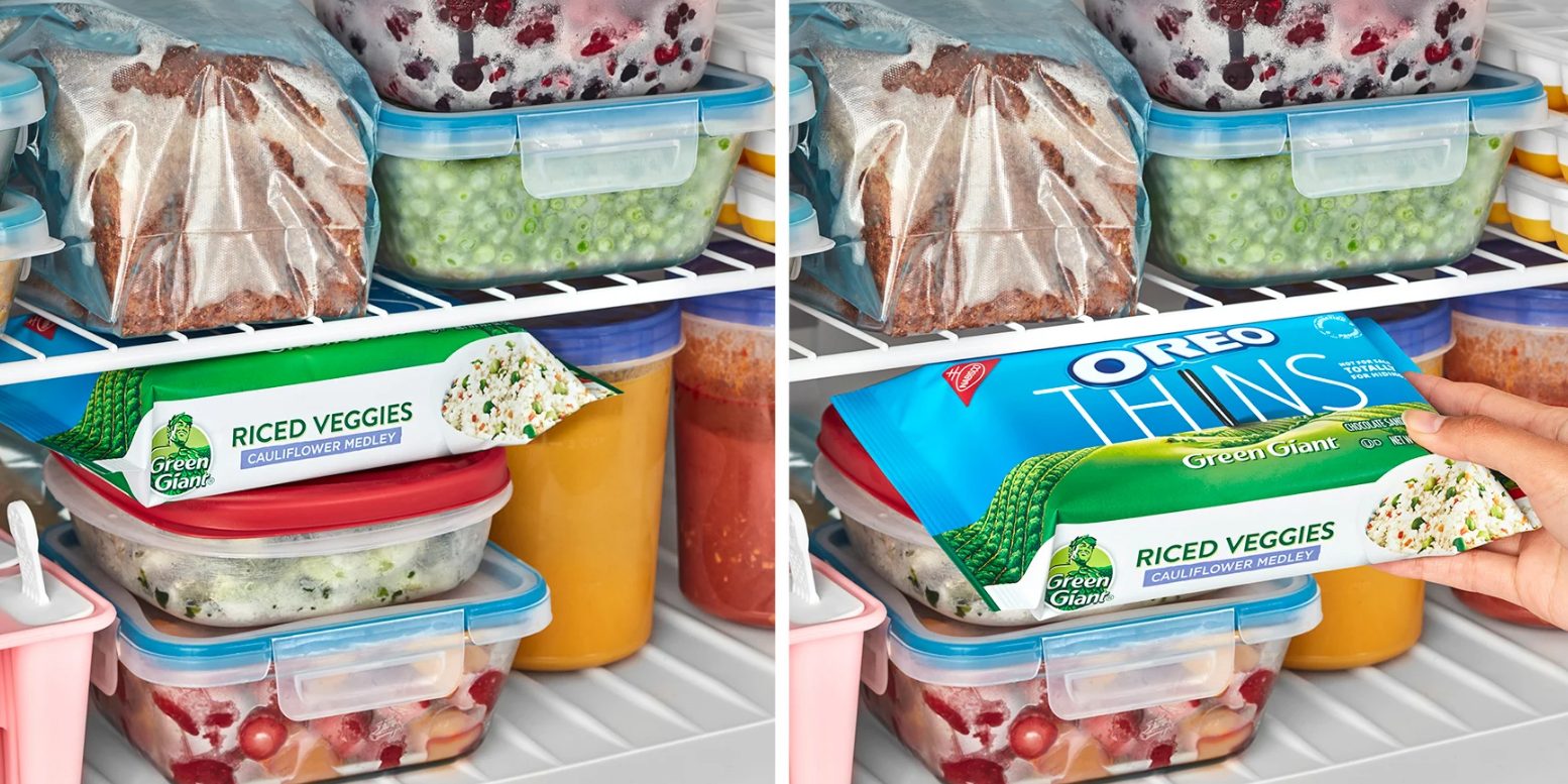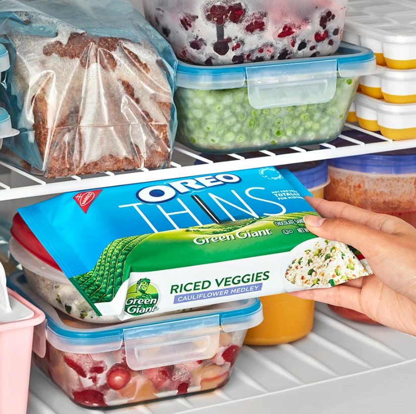Đối với những người thèm đồ ăn nhẹ lạnh, hãy cất bánh Oreo Thins trong tủ lạnh với thiết kế hình hoa súp lơ với rau củ của Green Giant hướng ra ngoài để khiến bất kỳ đứa trẻ nào cũng phải kinh hãi bỏ chạy.