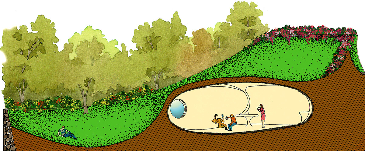 Lớp đất và cỏ xanh mướt có vai trò bảo vệ ngôi nhà khỏi nắng, gió, mưa và cả mùa khô; tránh sự giãn nở và co lại gây ra các vết nứt và hư hỏng cho ngôi nhà. Cồn cát xanh làm cho ngôi nhà như vô hình. Từ bên ngoài chúng ta chỉ thấy cỏ, cây cối và hoa. Bạn có thể đi dạo quanh khu vườn – cũng chính là nóc nhà – mà không hề nhận ra có một căn nhà ngay bên dưới chân mình.
