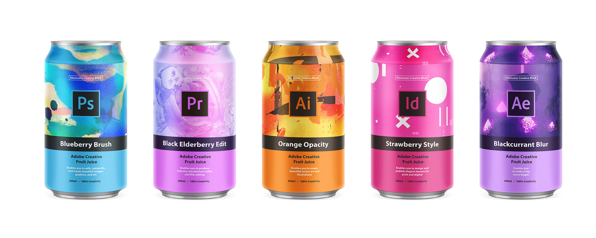 Studio-JQ, một studio chuyên thiết kế bao bì ở Anh đã tạo ra bộ Packaging các lon nước uống theo tinh thần của Adobe, mỗi “hương vị” được lấy tông màu và icon đặc trưng của các phần mềm Photoshop, Illustrator, After Effects,.. Bộ packaging vui vẻ và đầy cảm hứng này chắc chắn được các nhà sáng tạo yêu thích lắm đây!