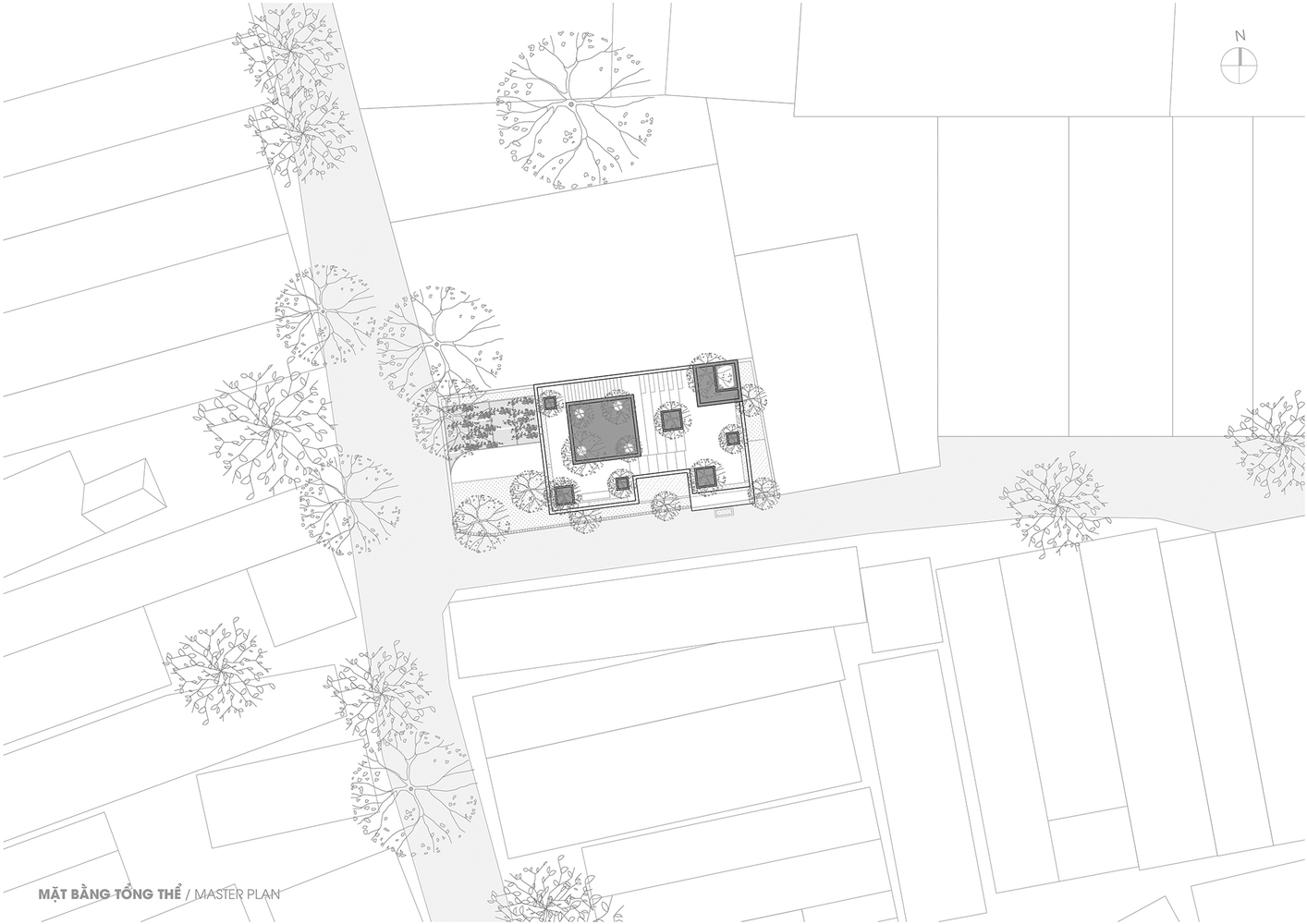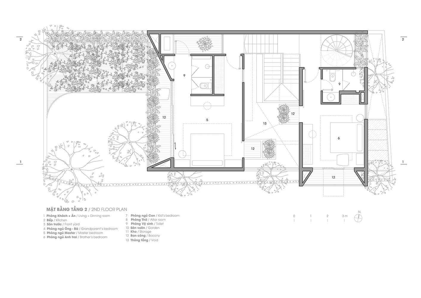 Ngôi nhà được thiết kế dựa trên nguyện vọng của chủ sở hữu: vừa là nơi thanh bình để thư giãn cuối tuần, vừa là khuôn viên ngập tràn cây xanh, ánh sáng và sự riêng tư tuyệt đối. Do đó, nhóm thiết kế đã quyết định tách ngôi nhà thành 2 phần với cách sắp xếp lệch tầng uốn lượn nhằm tạo sự riêng tư và tối ưu hóa không gian mặt tiền bên trong. Vì khu vực này được sử dụng cho nhiều hoạt động di chuyển, mỗi ban công và bộ cầu thang được tùy chỉnh đặc biệt và thay đổi theo từng tầng để tránh lặp lại trong di chuyển và tối đa hóa công năng sử dụng.