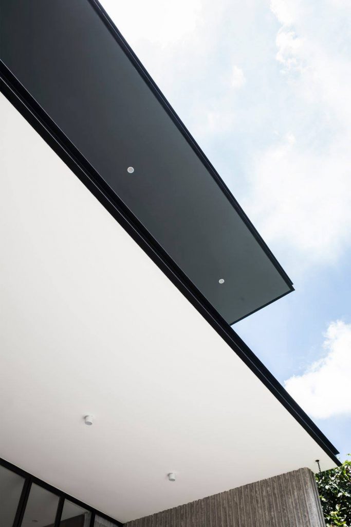 Ngôi nhà được thiết kế theo hướng Tây, một tấm chắn nắng tự động kiểm soát ánh sáng mặt trời chiếu qua cửa sổ trời lớn có thể mở ra ngoài sân để giúp ngôi nhà luôn mát mẻ và kiểm soát ánh nắng trực tiếp.
