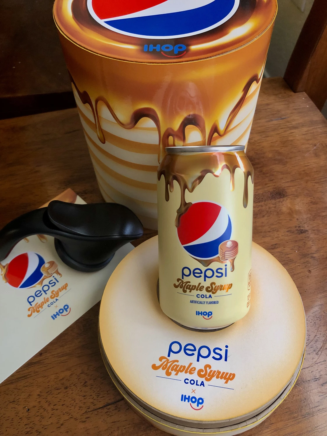 Có tên là Pepsi Maple Syrup Cola, hiện tạm thời bạn chưa thể tìm thấy sản phẩm phiên bản giới hạn này ở những của hàng gần nhất. Thay vào đó, bạn sẽ phải chụp hình cái bánh pancake của mình rồi chia sẻ nó lên Twitter hoặc Instagram với hashtag #ShowUsYourStack.