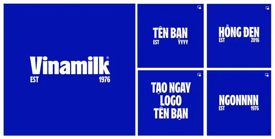 Cùng phân tích trên thiết kế Logo, Tôi tạm thời bỏ qua chi tiết tuyệt vời của logo, để dành nó cho phần phân tích về type system, mà cùng nhìn về cách mà các bạn trẻ bàn tán về cụm EST 1976. Tôi quan sát thấy sự quan tâm của mạng xã hội đặt lên cụm EST nhiều hơn cụm “Vinamilk” dù nó là chi tiết nhỏ, game tương tác custom logotype generate mà Vinamilk tạo ra hôm trước cũng dựa trên insight này và đã viral. Trong giới design thì tranh cãi vẫn xoay quanh cụm EST nhiều hơn, và kết quả là nó giúp cho người ta nhìn vào chi tiết nhỏ nhất của logo, vô tình ghi nhớ luôn cái logo tổng. Tôi dám chắc người làm design không chủ đích tạo viral trên cụm EST mà cơ bản là follow các yêu cầu thiết kế thuần tuý, nhưng bạn có thể thấy đó, một design đúng đắn sẽ phát huy được thêm rất nhiều tác dụng tích cực khác, đôi khi là ngoài mong đợi.