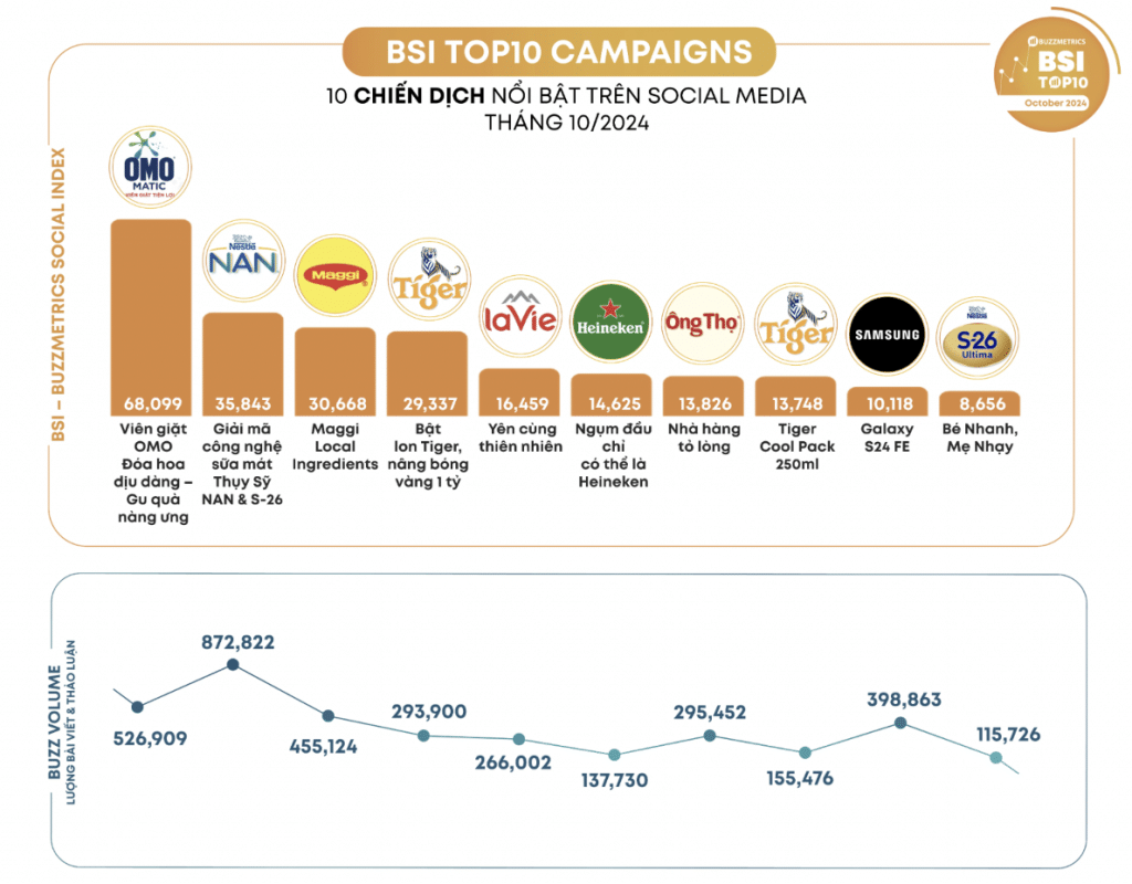 Với chiến lược marketing toàn diện, từ việc kết hợp với các KOLs nổi tiếng đến tiên phong lựa chọn các giải pháp quảng cáo số tiên tiến mà các thương hiệu khác trong ngành hàng giặt giũ ít sử dụng, OMO đã cho thấy bước đi đột phá để giành được sự chú ý và yêu thích trong bối cảnh mùa lễ 20/10 quen thuộc, gặt hái được những thành công ấn tượng. Chiến dịch đã đạt top 1 BXH BSI tháng 10/2024, tiếp cận đến 70% người dùng trên digital, đạt được 75% cơ hội hiển thị trên Google Search, 70% hiển thị quảng cáo trên top các đầu báo tại Việt Nam và hơn 480 nghìn lượt truy cập microsite, vượt 200% so với KPI đề ra ban đầu. Trong tháng 10/2024, chiến dịch đã ghi nhận hơn 800.000 lượt tương tác trên mạng xã hội, với hơn 299.000 người dùng độc nhất. Tổng cộng, các cuộc thảo luận xung quanh sản phẩm Viên giặt tiện lợi OMO Matic 3 trong 1 và Viên giặt OMO phiên bản giới hạn Đóa hoa dịu dàng đã tạo ra gần 527.000 buzz, làm nổi bật tầm ảnh hưởng sâu rộng của chiến dịch. Với điểm số cảm nhận tích cực đạt tối đa 1,00 cho thấy thông điệp của chiến dịch đã được đón nhận tích cực từ cộng đồng.
