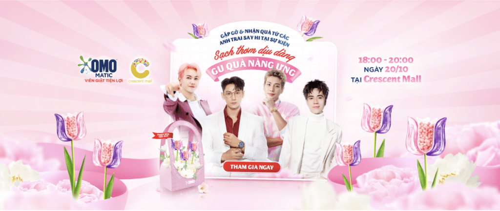 Để tạo nên những cuộc thảo luận sôi nổi và đẩy chiến dịch lên đỉnh cao, OMO mang đến sự kiện “Sạch thơm dịu dàng, gu quà nàng ưng” được tổ chức tại Crescent Mall (Quận 7). Đây là cơ hội để người tiêu dùng tương tác trực tiếp với thương hiệu, trải nghiệm sản phẩm như: chơi game cảm nhận “Siêu sức mạnh giặt giũ” từ Viên giặt tiện lợi OMO Matic 3 trong 1; tham gia workshop cắm hoa và làm thiệp handmade; check-in Tiệm hoa dịu dàng để lưu giữ những khoảnh khắc đáng nhớ và nhận quà từ Viên giặt tiện lợi OMO. Chiến dịch được xây dựng chặt chẽ từng bước về hành trình tiêu dùng từ nhận thức, tiếp nhận đến trải nghiệm sản phẩm trực tiếp, từ đó thúc đẩy chuyển đổi mua hàng, góp phần giúp Viên giặt tiện lợi OMO trở thành “Top of mind” của người tiêu dùng trong ngành hàng giặt giũ.