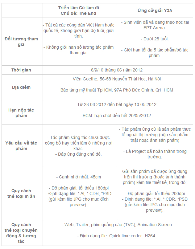 Nhằm tôn vinh những sáng tác đẹp, thiết kế sáng tạo, đặc biệt có tính ứng dụng cao, FPT Arena giới thiệu Giải thưởng Thiết kế ứng dụng Trẻ lần thứ I (Y3A) được tổ chức đồng thời với Triển lãm Cứ làm đi VI.