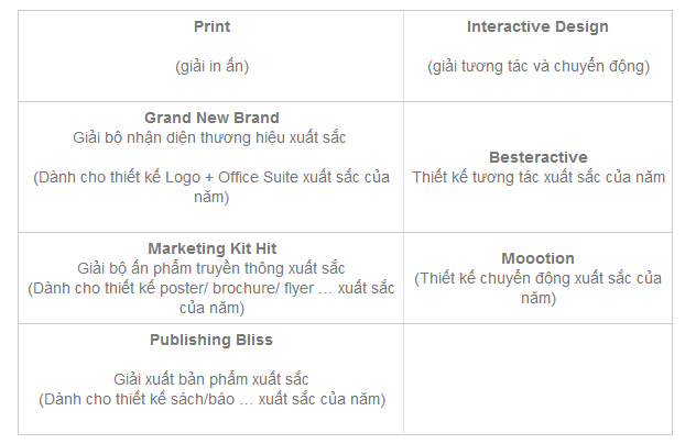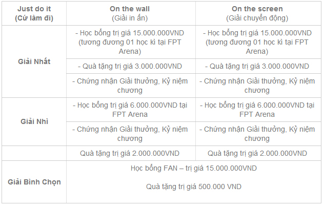 Mỗi hạng mục có 01 giải duy nhất: hiện vật trị giá 5.000.000VND