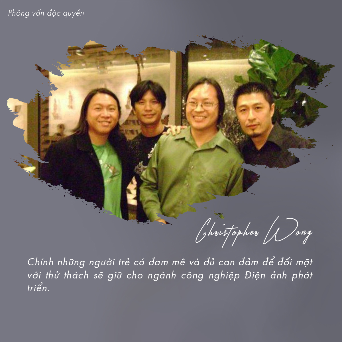 8. Một sinh viên tên là Quân gửi đến ông câu hỏi: Thưa thầy Christopher Wong, em có niềm đam mê với âm nhạc, đặc biệt là giai điệu và âm thanh xung quanh. Mỗi khi em nghe một bản nhạc, cảm xúc trong em thật sự được gợi mở. Em cảm thấy em có thể viết ngay một câu chuyện sau đó. Em đã có một số nỗ lực để nghiên cứu thiết kế âm thanh cho phim. Nhưng em nhận được rất ít sự khích lệ từ những người xung quanh. Họ đã nói với em rằng triển vọng nghề nghiệp là có hạn và em không thể kiếm được tiền. Em sẽ cảm thấy mình thật may mắn nếu thầy có thể cho em một lời khuyên. Theo thầy, em cần chuẩn bị những gì để theo đuổi đam mê?