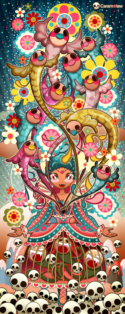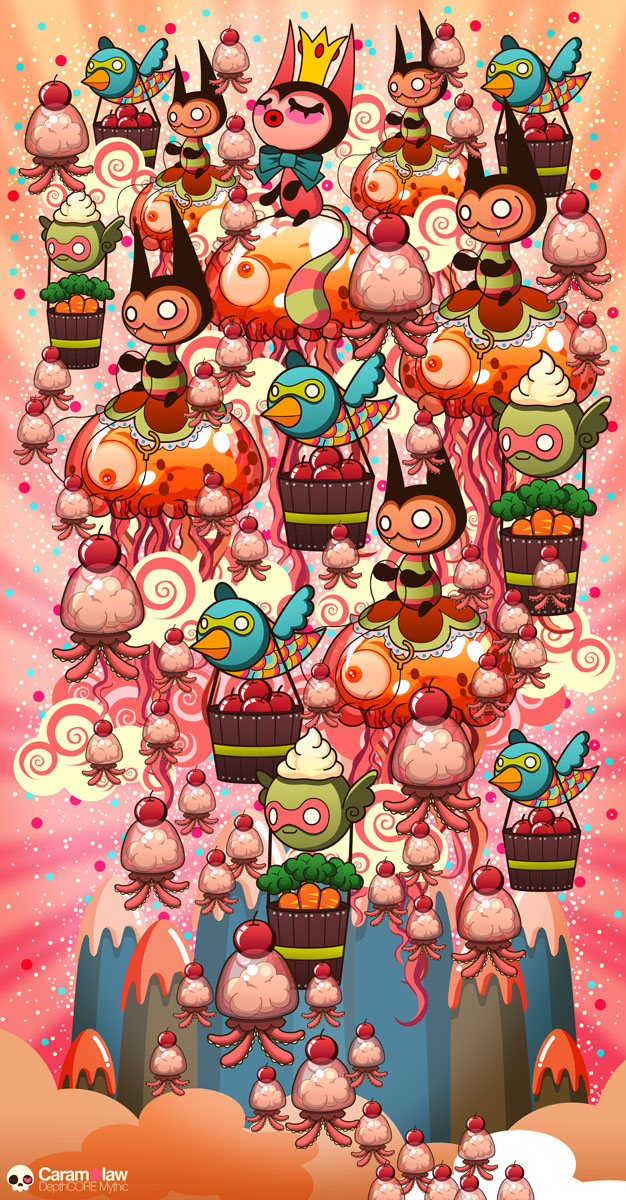 Ban đầu tôi lựa chọn các hình thức thể hiện một cách ngẫu nhiên như truyện tranh, phim hoạt hình, thiết kế đồ họa v.v… Thật sự thì tôi biết bản thân mình yêu thích lĩnh vực tranh minh họa nhưng lúc đó tôi chưa biết mình phải tìm kiếm cái gì. Cho nên khi mới bắt tay vào, mọi thứ khá là rắc rối khi tôi phải thử đủ loại công nghệ hỗ trợ hay tham khảo nhiều loại tranh khác nhau mà vẫn chưa có ý tưởng nào bật lên trong đầu. Cho tới một ngày đẹp trời, tôi quyết định mình sẽ thử sức với “màu sắc” và “kẹo ngọt” vì đây là 2 chất liệu mà tôi cảm thấy bị thu hút nhất. Tác phẩm đầu tay của tôi về kẹo ngọt có tiêu đề “ Thế giới điên đảo”. Và đúng là nó đã không nằm ngòai mong đợi khi những viên kẹo đủ màu sắc, các nhân vật kì quái, những hình thù biết bay, cầu vồng hay nói chung tất cả mọi thứ mà tôi muốn có mặt trong tác phẩm của mình đều đã xuất hiện. Đó chính là khi tôi nhận ra mình đã khai phá được phong cách riêng của Caramelaw. Tôi đã mất 5 năm trời cho nó và cuối cùng cũng đã hòan thành. Cũng từ tác phẩm này mà tôi tiếp tục phát triển và khằng định phong cách của mình và trở thành nghệ sĩ Caramelaw của ngày hôm nay.
