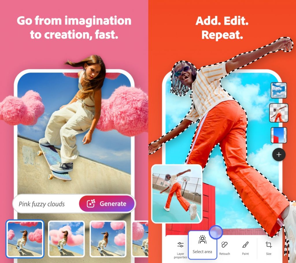 Từ các công cụ chỉnh sửa chuyên nghiệp như layer, mặt nạ, chế độ hòa trộn, cho đến các tính năng hiện đại như Generative Fill sử dụng AI Firefly để thêm hoặc xóa vật thể, mọi thứ đều được tối ưu hóa cho thao tác chạm. Người dùng còn có thể tận hưởng bộ công cụ chọn thông minh như Object Select, Magic Wand, cùng các tính năng xóa khuyết điểm như Clone Stamp và Spot Healing Brush.