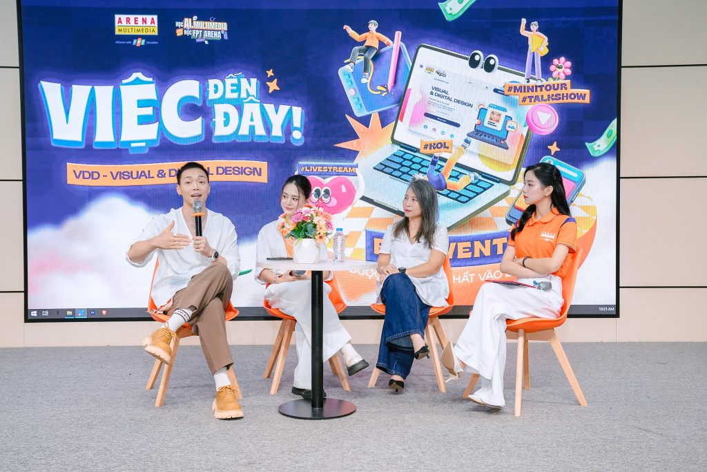 Dưới góc độ giáo dục, ThS. Nguyễn Phương Anh (đại diện FPT Arena Multimedia), nhận định: “Nhiều bạn trẻ bước vào ngành thiết kế với nhiều cảm hứng nhưng thiếu tư duy phản biện và khả năng trình bày ý tưởng. Với Visual & Digital Design, chúng tôi chú trọng rèn luyện storytelling, bố cục hình ảnh và kỹ năng giao tiếp để sinh viên không chỉ thiết kế đẹp mà còn biết thuyết phục khách hàng và hiểu người xem.” Cô nhấn mạnh đây là nền tảng quan trọng để đào tạo bài bản người làm nghề.