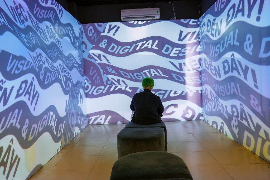 Điểm nhấn của Big Event lần này là khu vực triển lãm thị giác, nơi kết sợp sáng tạo – trải nghiệm và công nghệ. Không gian đầu tiên mang cảm hứng từ nghệ thuật đường phố, người tham gia tự tay dán, vẽ, phối màu để tạo ra tác phẩm cá nhân ngay trên tường lớp học – được biến hoá thành một studio nghệ thuật. Trạm thứ hai là “con đường thị giác” trưng bày poster, bìa sách do chính sinh viên thực hiện, cho phép người xem bước đi giữa những tác phẩm như thể đang trải nghiệm một timeline của lịch sử thiết kế in ấn. Trạm cuối cùng đưa người tham dự vào căn phòng 3D Mapping, nơi ánh sáng và chuyển động số hoá giúp tạo ra không gian thị giác đa chiều, tái hiện tương lai của thiết kế trong môi trường công nghệ cao.