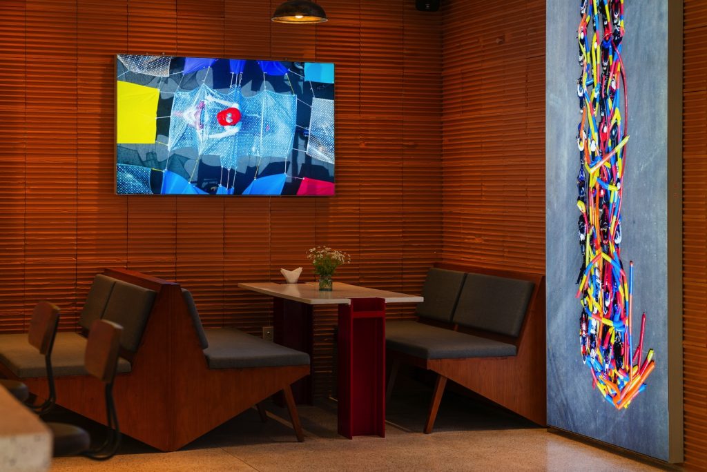 Trang hoàng các bức tường của Piece Of Drink là hình ảnh các tác phẩm sắp đặt do nghệ sĩ Ưu Đàm Trần Nguyễn tặng cho quán. Đây là những tác phẩm nằm trong series Rồng Rắn Lên Mây của tác giả tham gia triển lãm Asia Pacific Triennial lần thứ tám ở Brisbane, Úc tháng 04 năm 2016. Sử dụng một vật liệu rất thường nhật là bao đựng rác chứa đầy khí thải, tác giả đã tái hiện lại cơn lốc các dòng khí thải từ hàng trăm xe máy vây quanh chúng ta mỗi giờ tan tầm khi dừng lại ở các ngã tư. Dự án cảnh báo con người thành thị về những hiểm nguy tiềm tàng của ô nhiễm môi trường, hướng chúng ta suy nghĩ sâu hơn để sống một cách có phản tỉnh.