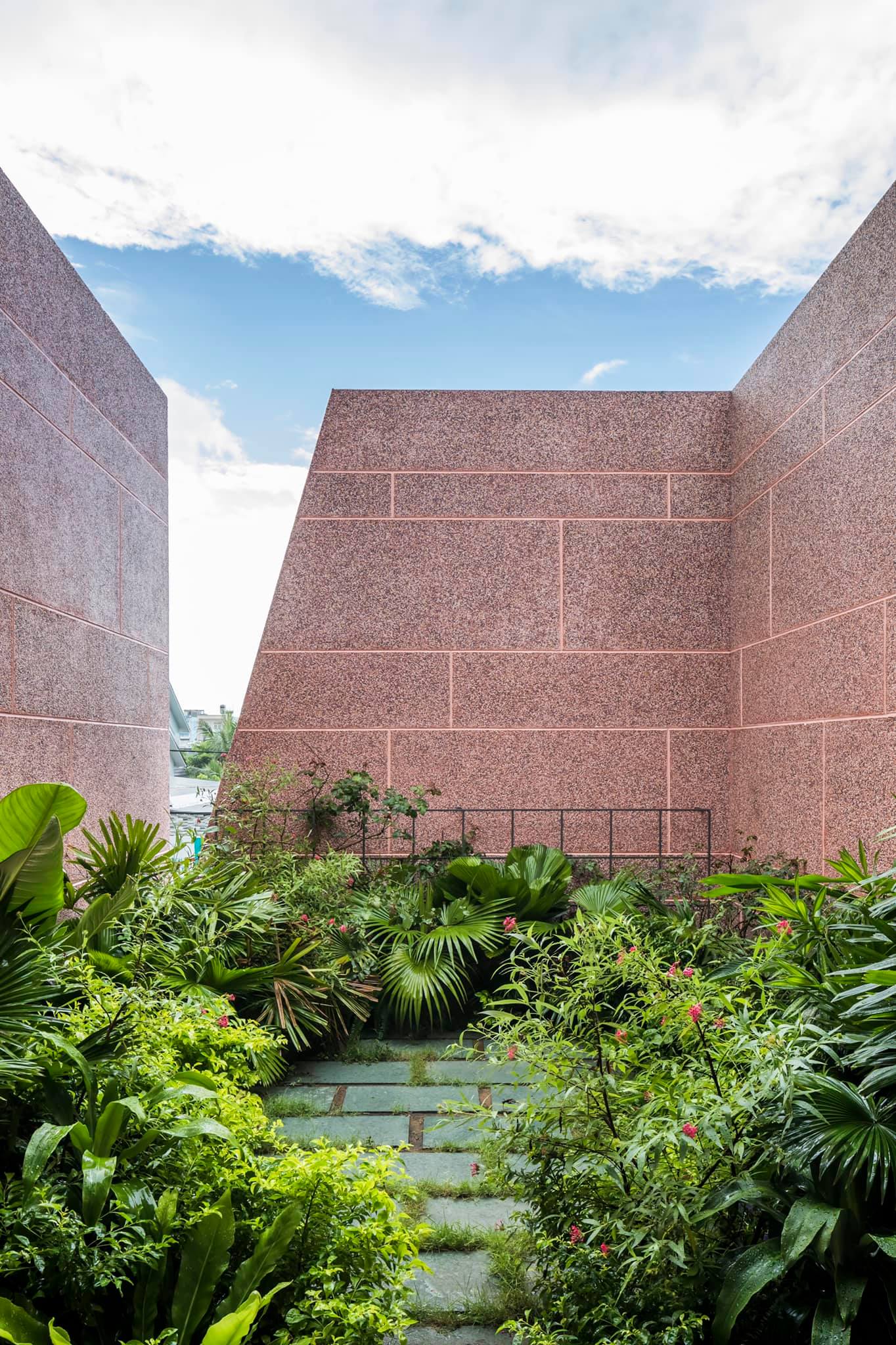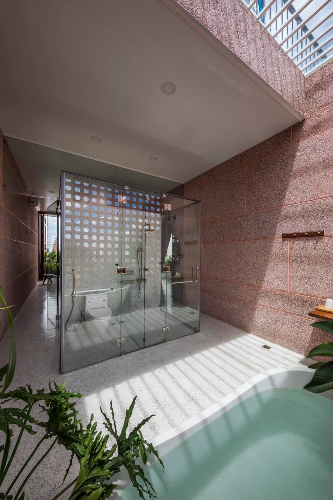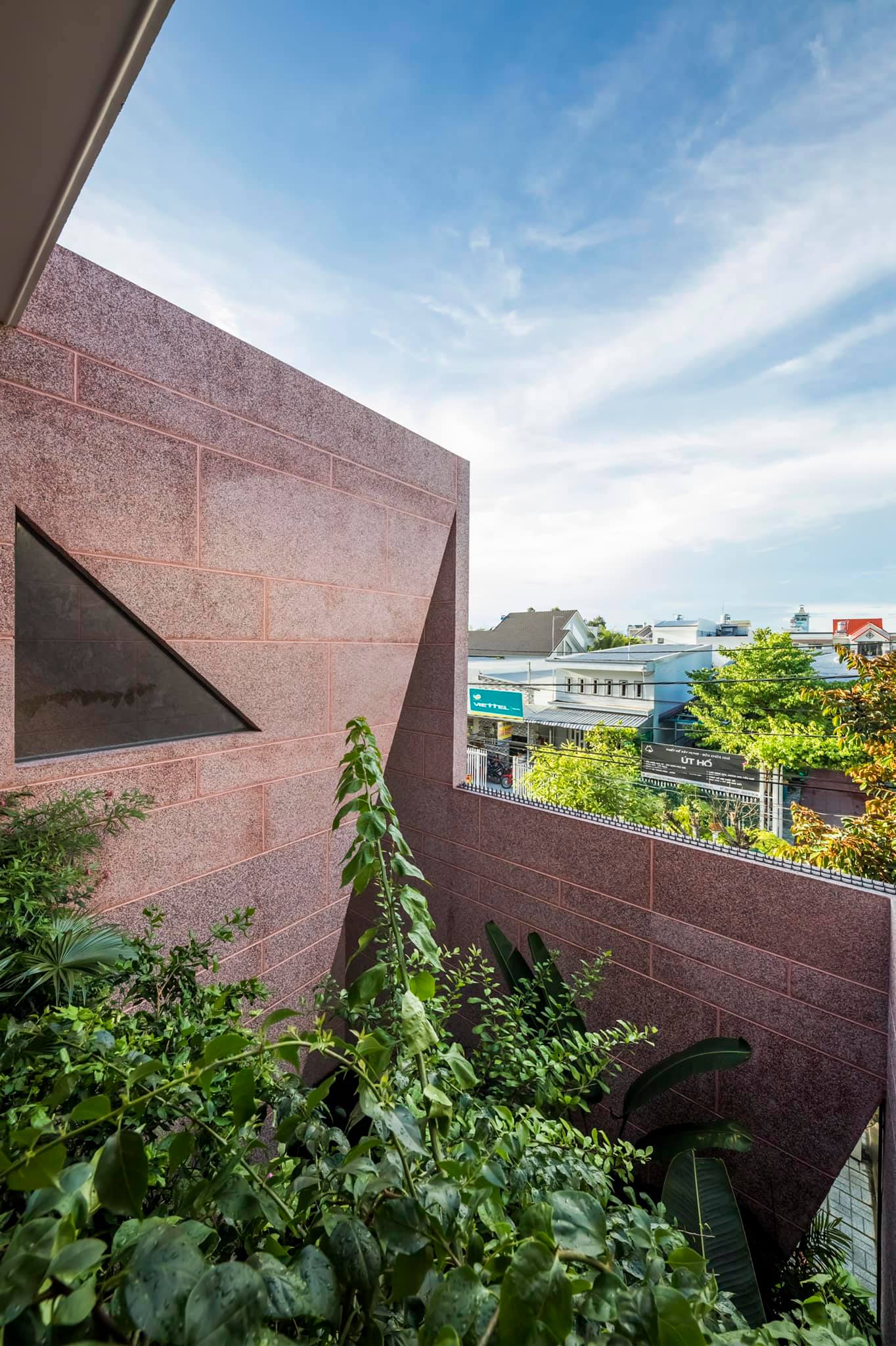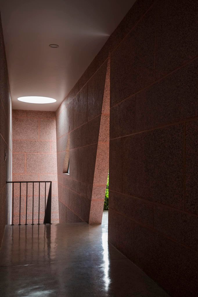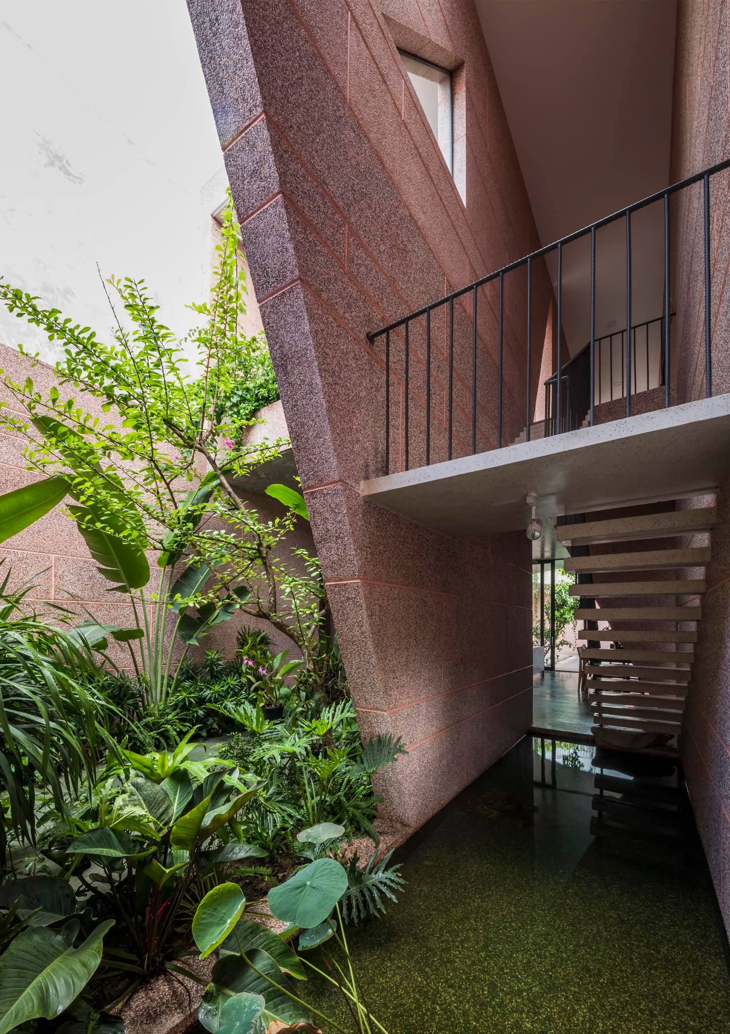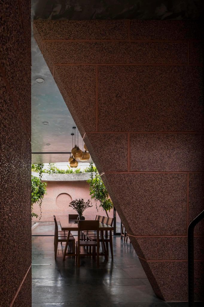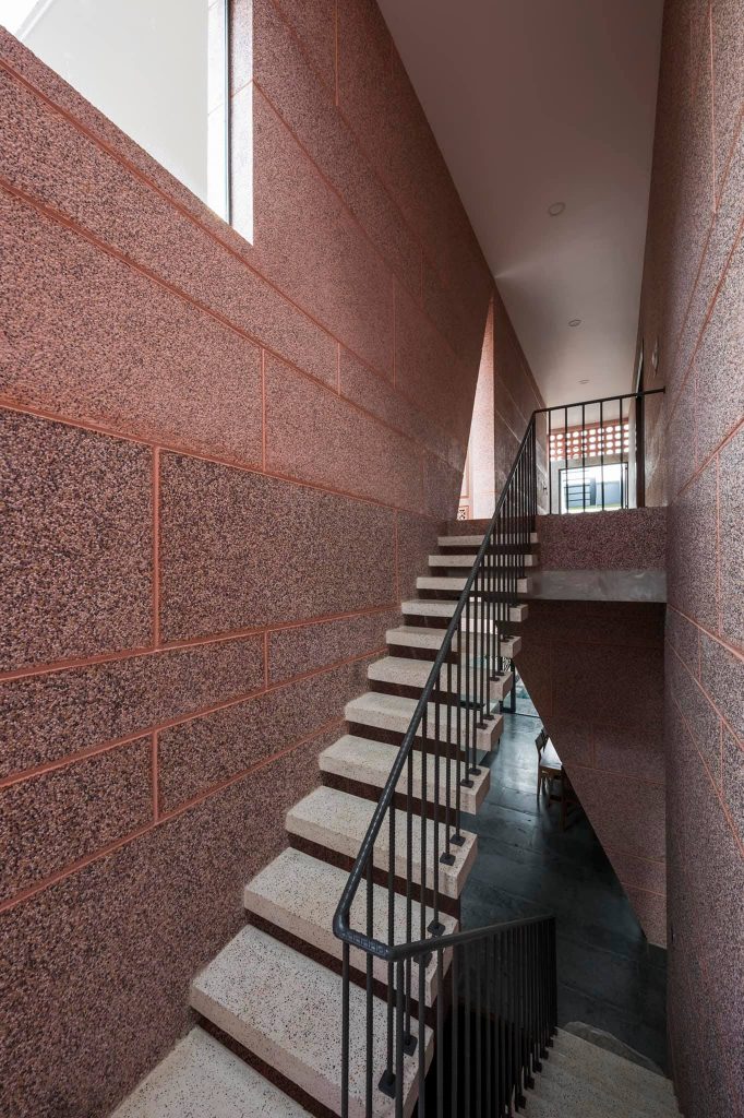 Không gian của Pink House được tách biệt thành các lớp khác nhau bằng vật liệu đá granit đồng nhất bên trong và bên ngoài, làm mờ ranh giới, chỉ có chủ thể và bầu không khí xung quanh chủ thể tạo thành khối. Mặt bằng được tính toán theo mục đích sử dụng và từng hoạt động diễn ra.