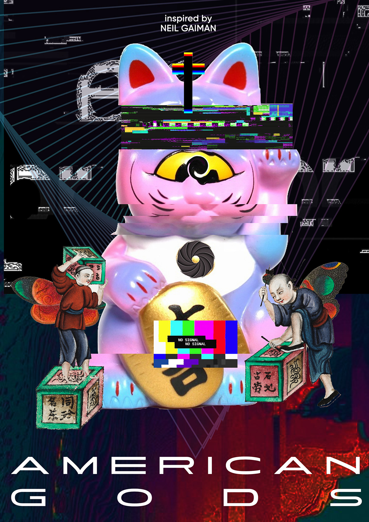 #17 American Gods poster redesign (Selected character: New Media) “The TV's the altar. I'm what people are sacrificing to".