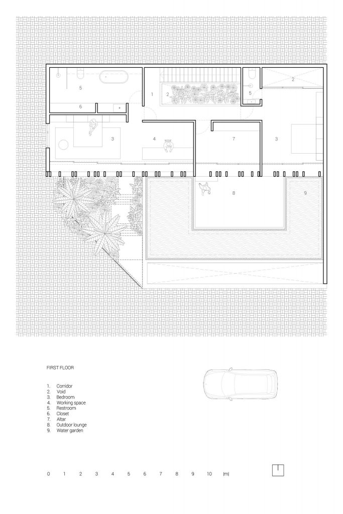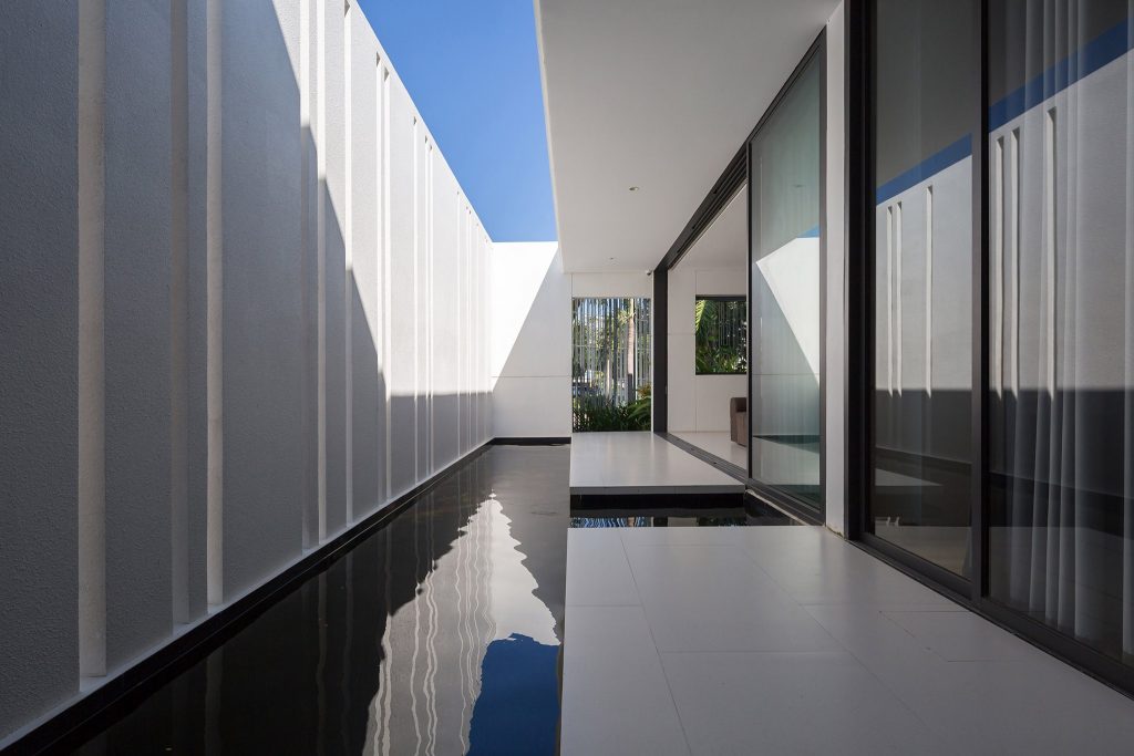 Sự hình dung ban đầu về các không gian sống luôn được bao quanh bởi không gian chuyển tiếp. Vùng không gian này được xem là lớp đệm giữa trong và ngoài môi trường. Vùng này cần rộng và lớn hơn để có thể cảm nhận rõ ràng, đi bên trong và linh động khi sử dụng. Vùng không gian này sẽ không rõ ràng, đôi khi thuộc bên ngoài chịu mọi ảnh hưởng từ môi trường, đôi khi thuộc bên trong làm rộng lớp không gian. Không khí đi qua vùng không gian này sẽ mát hơn nhờ nhiều loài cây bản địa và độ ẩm từ mặt nước. Con người ở vùng không gian này sẽ tiếp xúc nhiều hơn với ánh sáng tự nhiên và không khí tự nhiên.