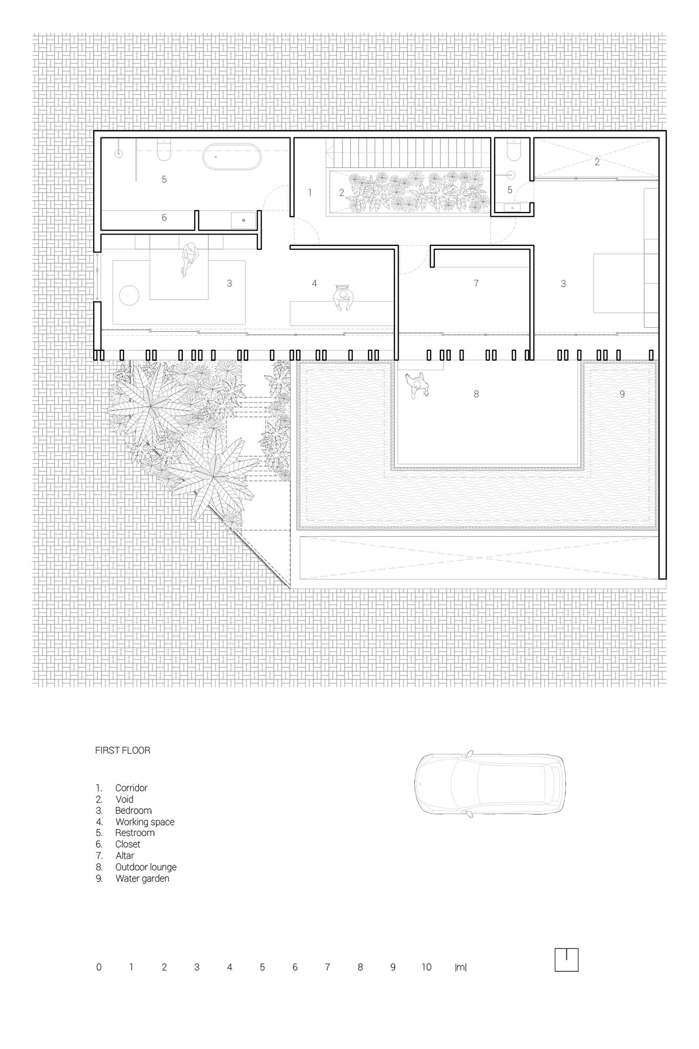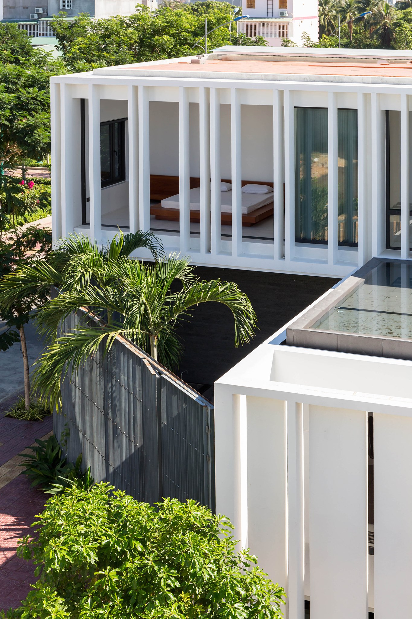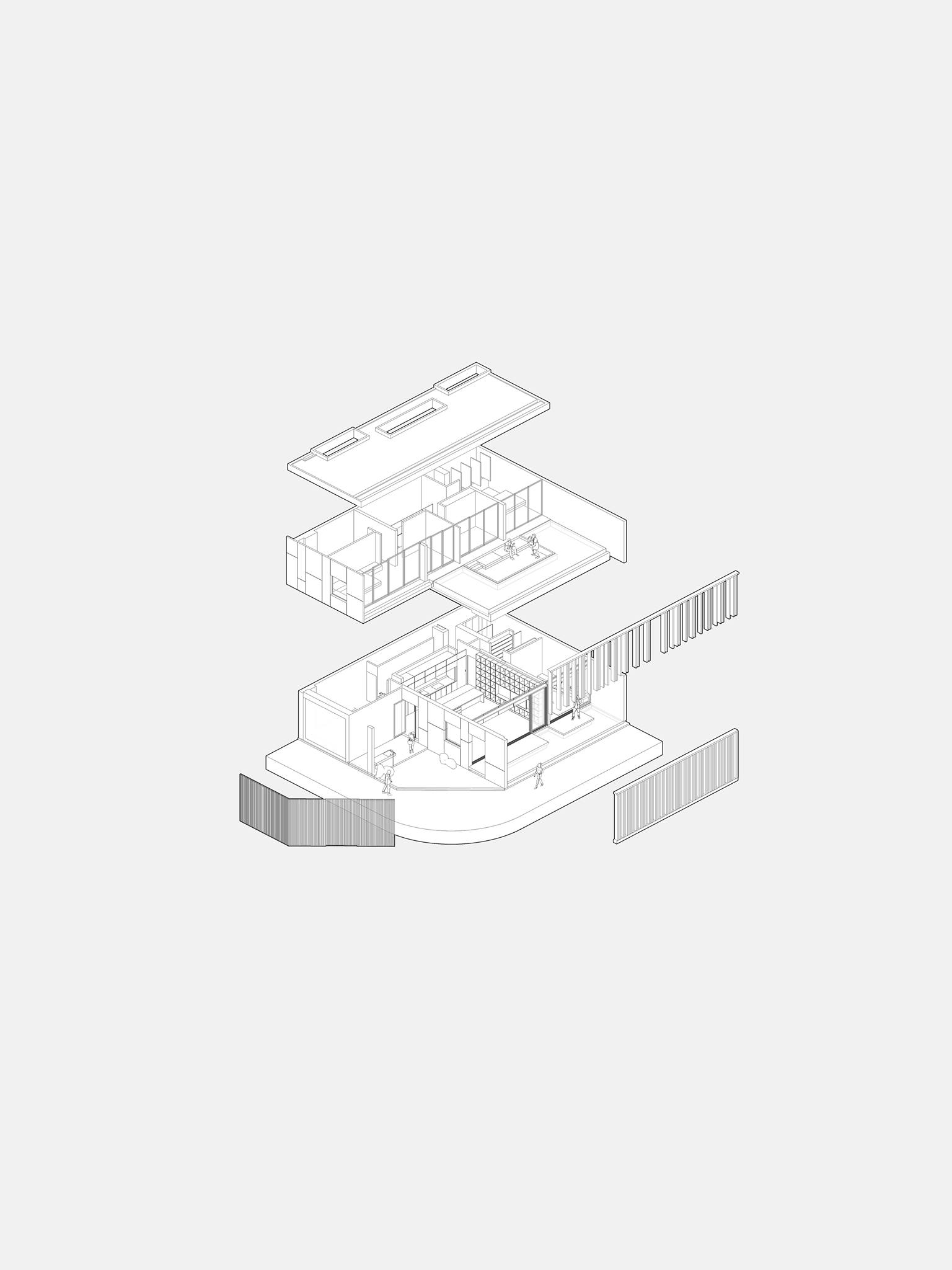 Sự hình dung ban đầu về các không gian sống luôn được bao quanh bởi không gian chuyển tiếp. Vùng không gian này được xem là lớp đệm giữa trong và ngoài môi trường. Vùng này cần rộng và lớn hơn để có thể cảm nhận rõ ràng, đi bên trong và linh động khi sử dụng. Vùng không gian này sẽ không rõ ràng, đôi khi thuộc bên ngoài chịu mọi ảnh hưởng từ môi trường, đôi khi thuộc bên trong làm rộng lớp không gian. Không khí đi qua vùng không gian này sẽ mát hơn nhờ nhiều loài cây bản địa và độ ẩm từ mặt nước. Con người ở vùng không gian này sẽ tiếp xúc nhiều hơn với ánh sáng tự nhiên và không khí tự nhiên.
