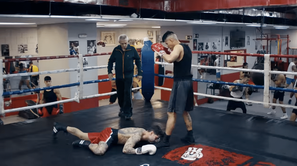 Một võ sĩ xịt khử mùi Lynx khiến đối thủ hạ người để hít hà mùi thơm dưới chân mình.