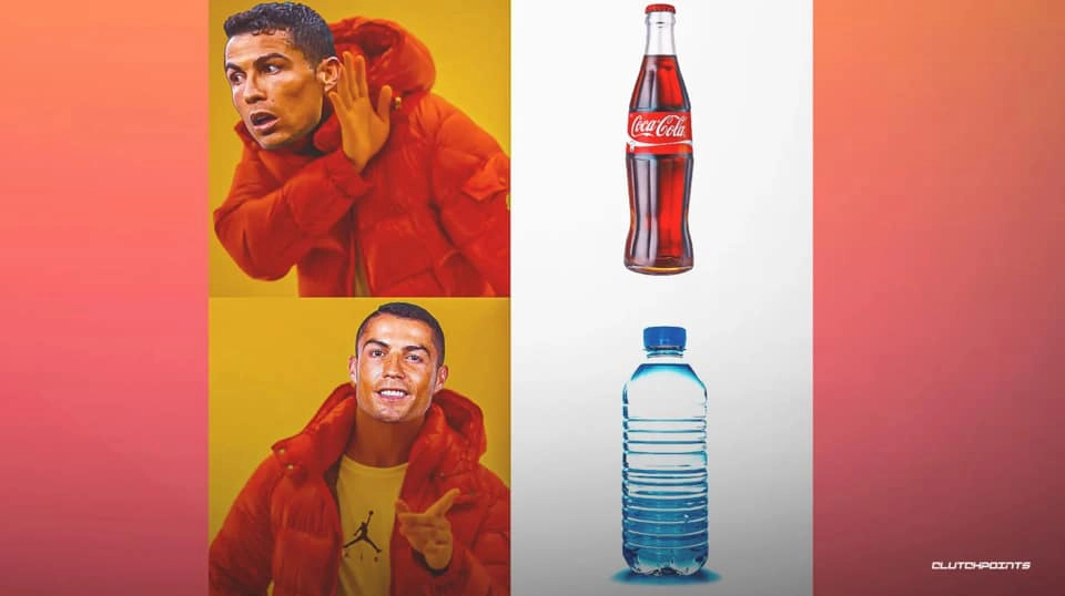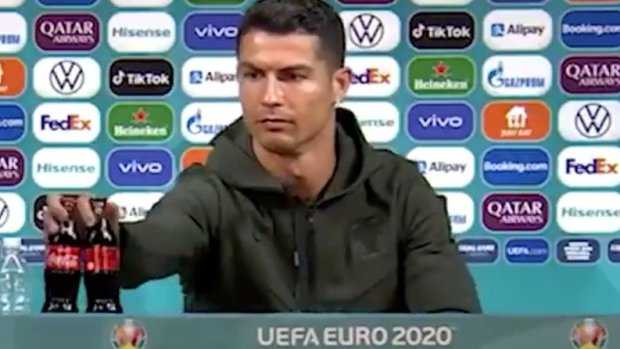 Ronaldo sau khi tự tay dẹp đi sản phẩm Coca-Cola trong buổi họp báo, thay vào đó là đưa lên chai nước với khẩu hiệu “Hãy uống nước lọc”. Hành động này đã khiến Coca-Cola mất 4 tỷ USD vốn hóa và trở thành nhà tài trợ “nhọ” nhất lịch sử Euro.