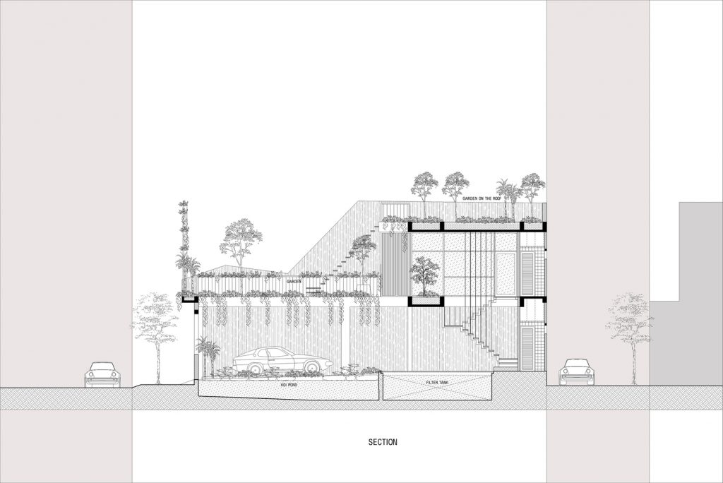 Công trình được thiết kế nhằm thích ứng với khí hậu nhiệt đới, đồng thời gia tăng sự kết nối với con người và thiên nhiên thông qua các không gian sống, không gian thư giãn với các giải pháp kiến ​​trúc. Đồng thời mang đến sự kết nối với ngôi nhà cũ thông qua thói quen, lối sống và văn hóa sử dụng hài hòa với quang cảnh “trồng rau nuôi cá” gần gũi với ngày xưa.