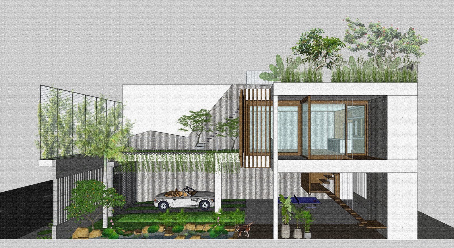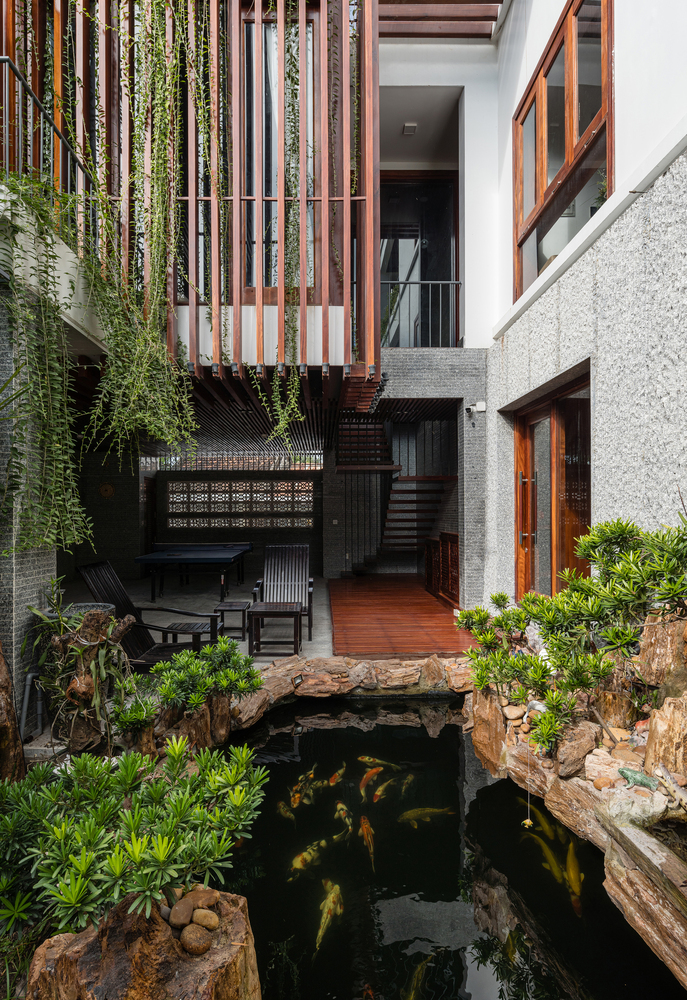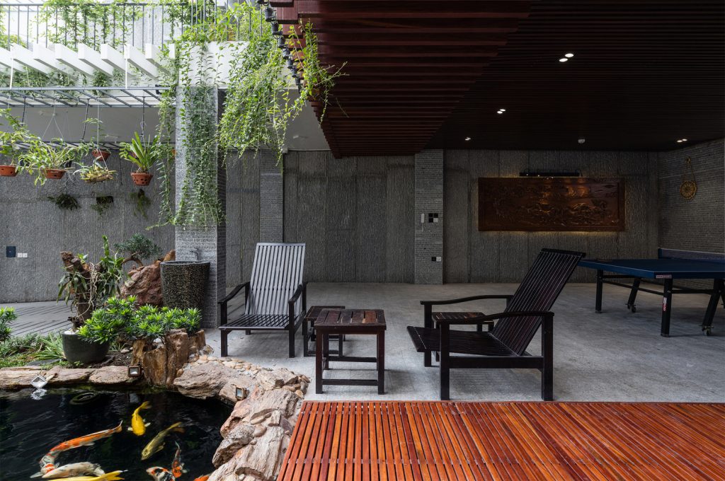 Công trình được thiết kế nhằm thích ứng với khí hậu nhiệt đới, đồng thời gia tăng sự kết nối với con người và thiên nhiên thông qua các không gian sống, không gian thư giãn với các giải pháp kiến ​​trúc. Đồng thời mang đến sự kết nối với ngôi nhà cũ thông qua thói quen, lối sống và văn hóa sử dụng hài hòa với quang cảnh “trồng rau nuôi cá” gần gũi với ngày xưa.