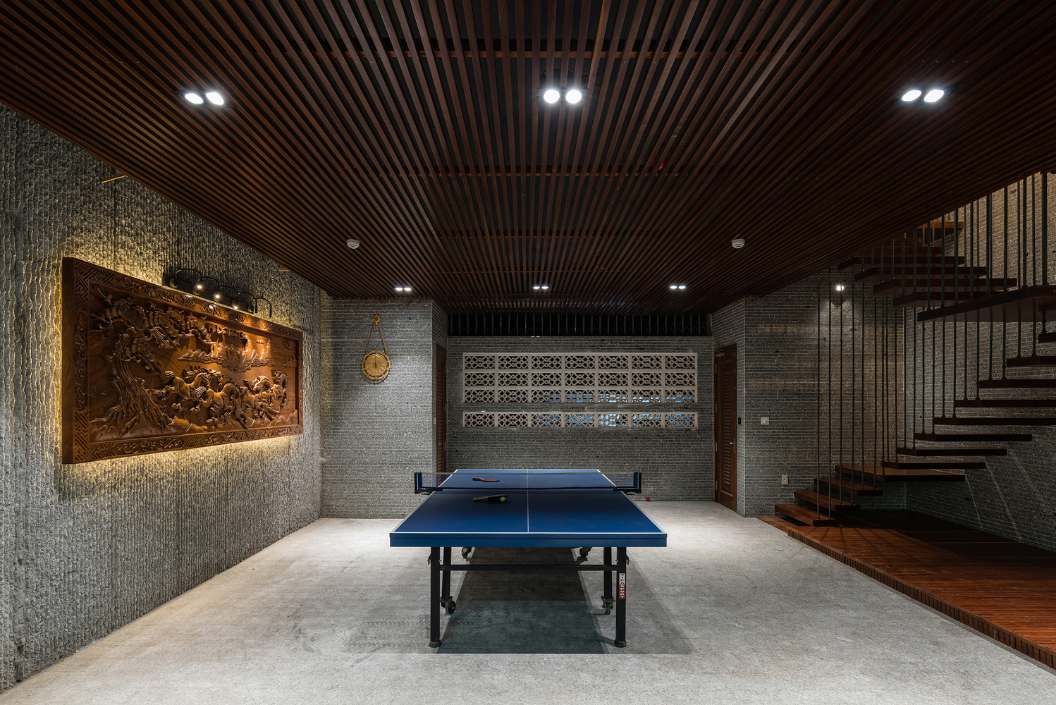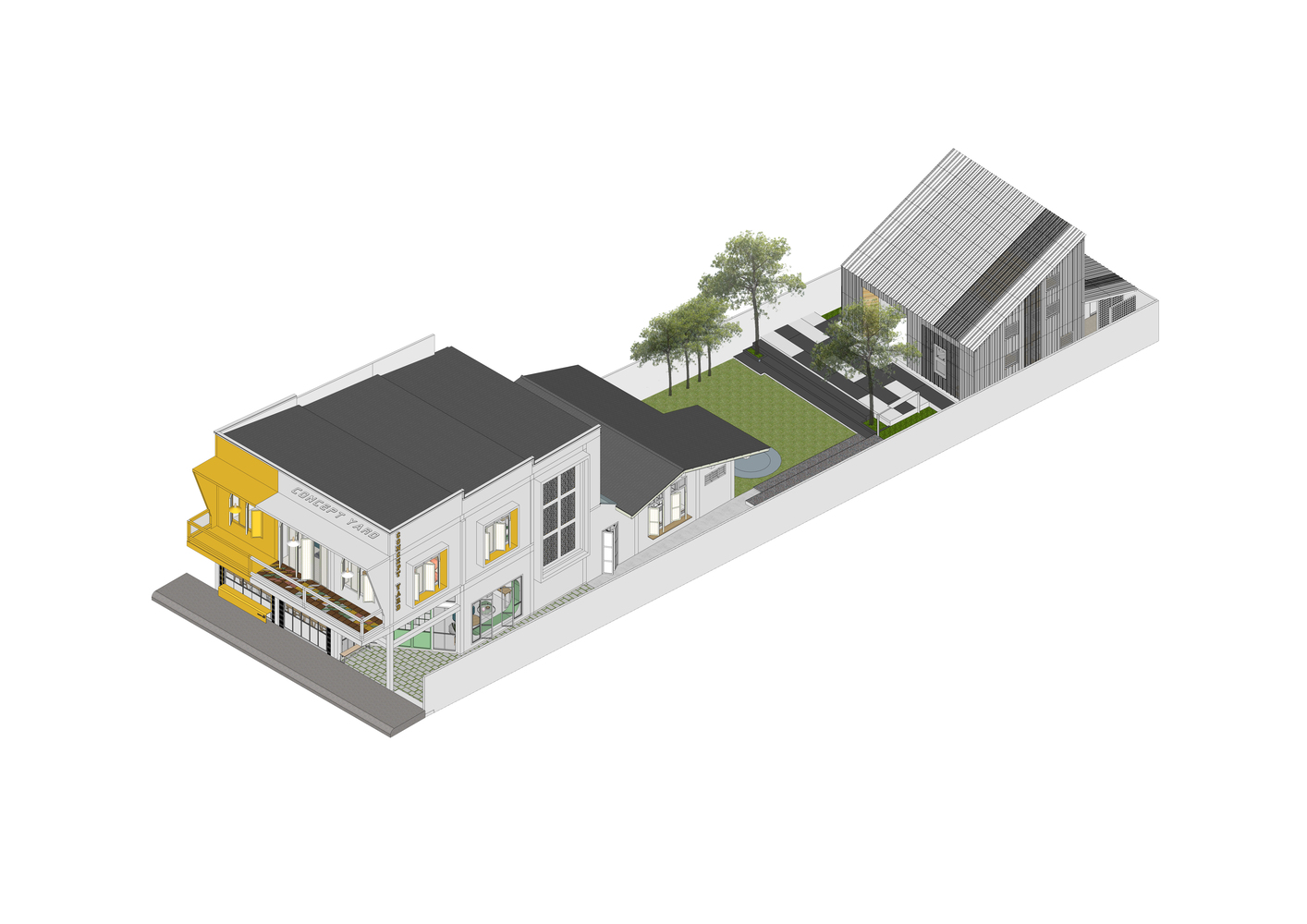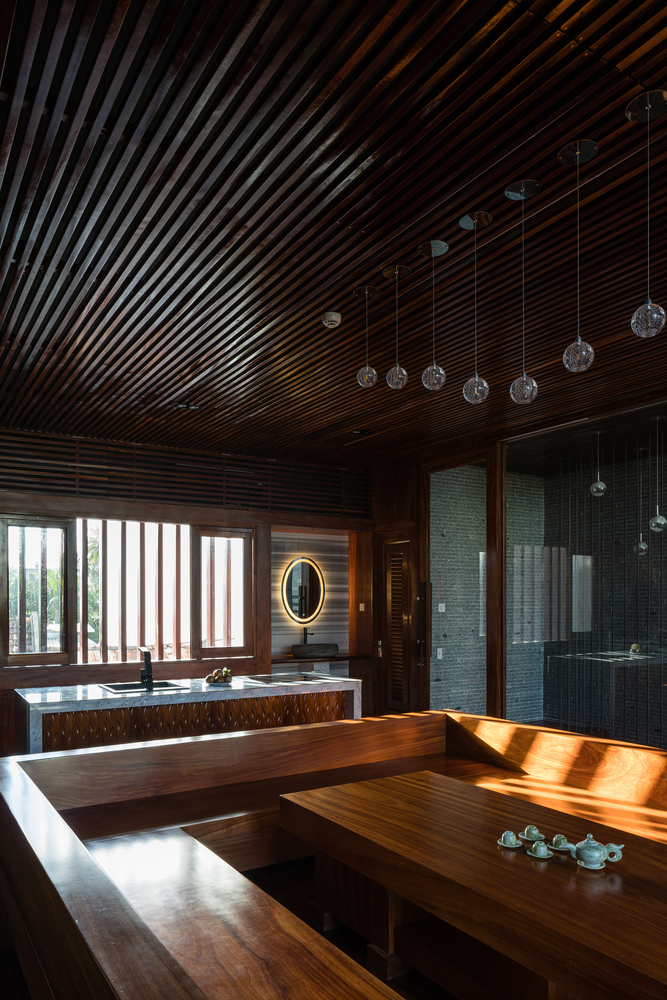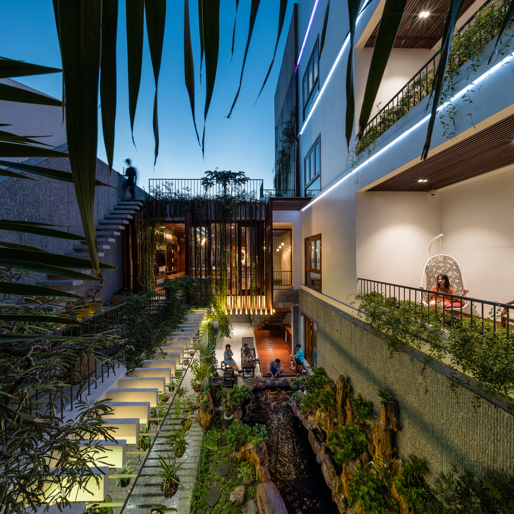 Thay vì có một khoảng sân rộng như những ngôi nhà trong làng, Ladesignstudio tạo ra nhiều khoảng sân ở các độ cao khác nhau, phù hợp với cơ cấu xây dựng theo chiều cao. Tầng lửng tạo ra một khoảng sân phía ngoài để kết nối với sân giữa của ngôi nhà.
