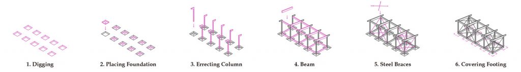 Giai đoạn đầu của dự án bắt đầu từ năm 2012 với một prototype khung thép. Kể từ năm 2013, nhằm theo đuổi sự ổn định cao hơn và giảm nóng cho ngôi nhà trong khí hậu nhiệt đới, một prototype mới với khung bê tông đúc sẵn đã được thiết kế và hai ngôi nhà đã được xây dựng tại tỉnh Long An.