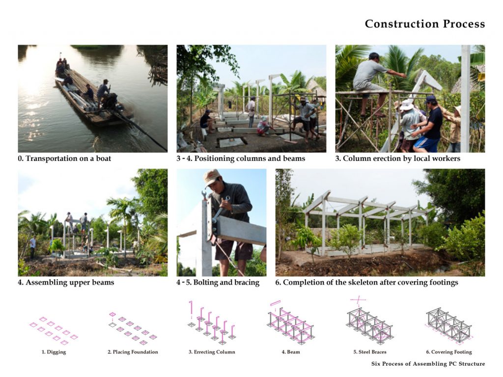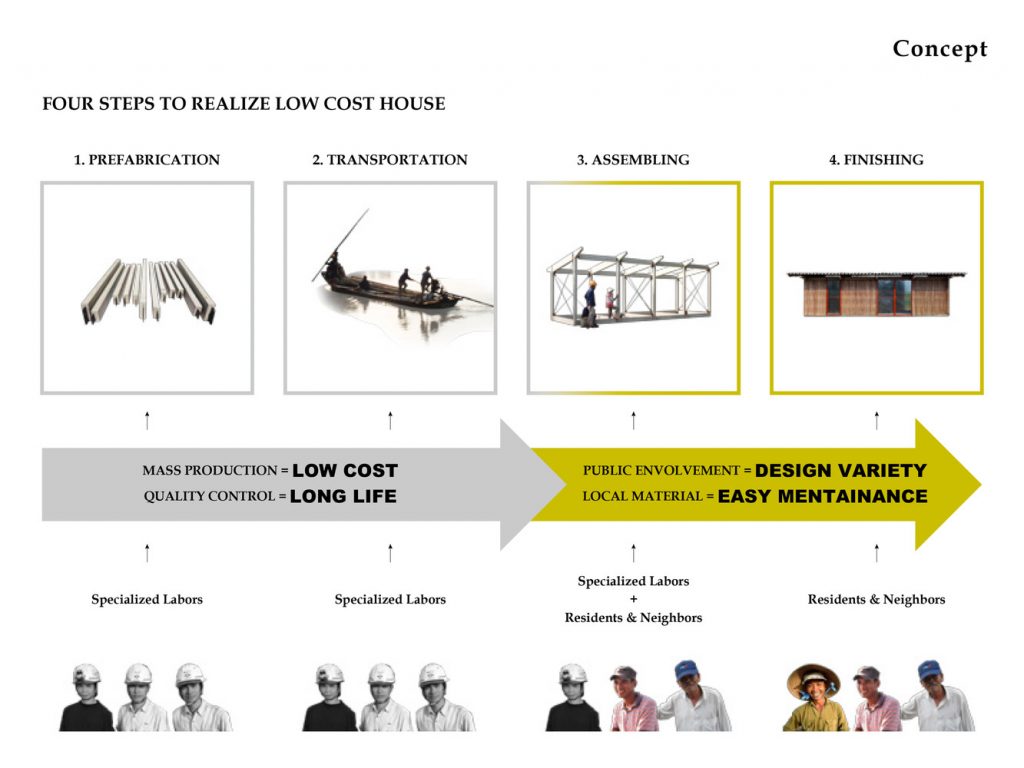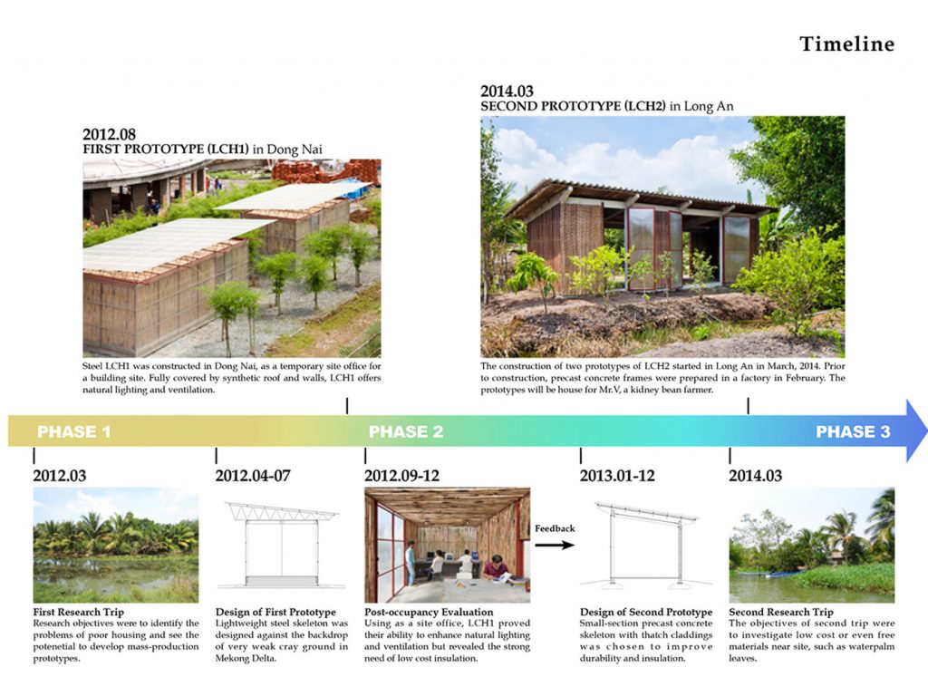 Giai đoạn đầu của dự án bắt đầu từ năm 2012 với một prototype khung thép. Kể từ năm 2013, nhằm theo đuổi sự ổn định cao hơn và giảm nóng cho ngôi nhà trong khí hậu nhiệt đới, một prototype mới với khung bê tông đúc sẵn đã được thiết kế và hai ngôi nhà đã được xây dựng tại tỉnh Long An.