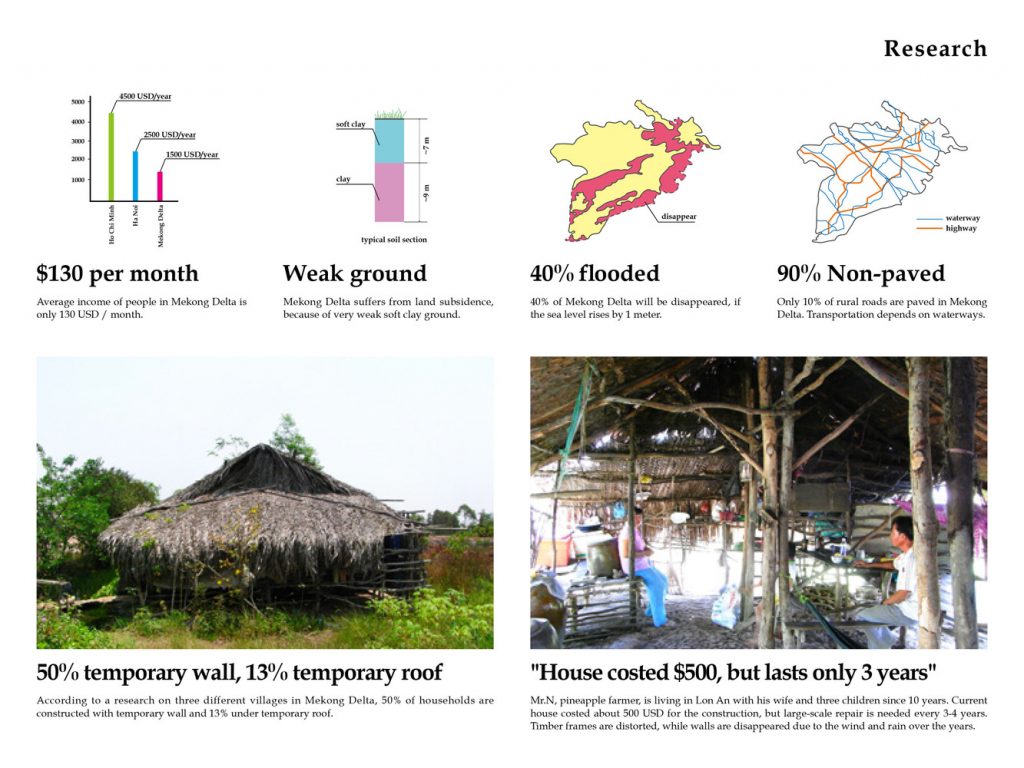 Người dân vùng Đồng bằng sông Cửu Long với thu nhập bình quân chỉ tầm 100 USD/tháng chủ yếu sống trong những căn nhà tạm bợ rẻ tiền. Trớ trêu thay, do kết cấu kém dẫn đến phí bảo trì cao. Vì vậy, nhà kiên cố nhưng giá rẻ đang là vấn đề xã hội cấp thiết ở đây. Với tình hình như vậy, mục tiêu của dự án “S House” là cung cấp những ngôi nhà vững chãi nhưng gọn nhẹ, ở lâu dài nhưng giá cả phải chăng với ngân sách 4.000 USD/căn (30 mét vuông).