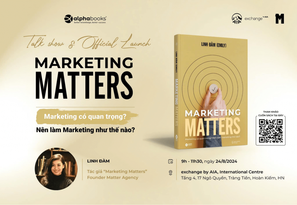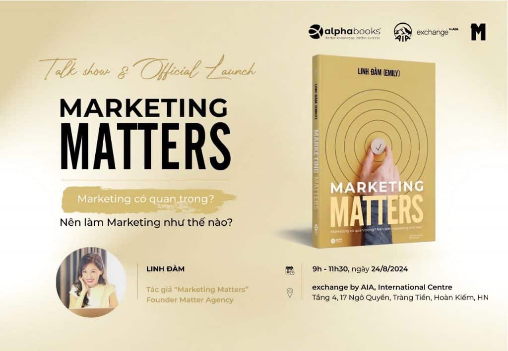 Sau 17 năm hoạt động trong lĩnh vực marketing tại các vị trí C-level, sáng lập doanh nghiệp, chuyên gia marketing cho các doanh nghiệp Việt Nam và nước ngoài, tác giả của nhiều phân tích tại Dealstreetasia, CafeBiz, Vietnam Financial Review… , từ chính nhu cầu của độc giả về một cuốn sách marketing toàn diện, đa chiều – mới đây Linh Đàm (Emily) cùng với Alpha Books đã cho ra mắt cuốn sách mới nhất mang tên: “Marketing Matters”.
