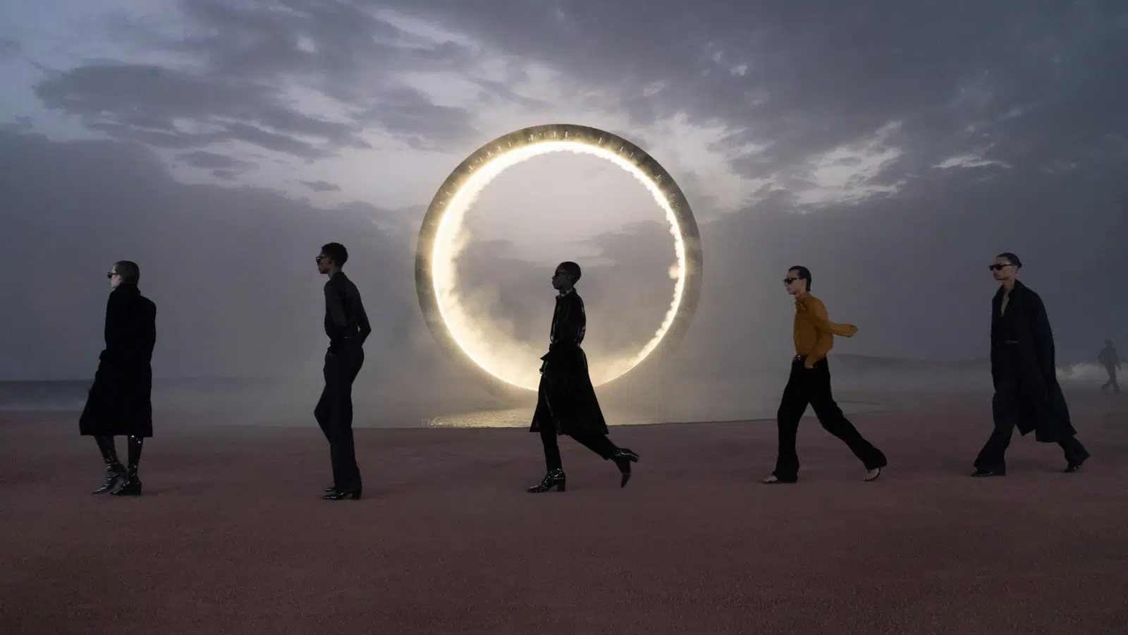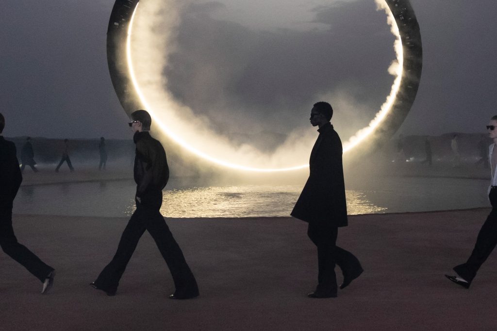 Một chiếc vòng kim loại khổng lồ phát sáng được thiết kế bởi Es Devlin đã trở thành tâm điểm cho show diễn thời trang nam Xuân Hè 2023 vừa qua của nhà mốt Saint Laurent được tổ chức tại giữa sa mạc Agafay cách thành phố Marrakech của Ma-rốc 30km.
