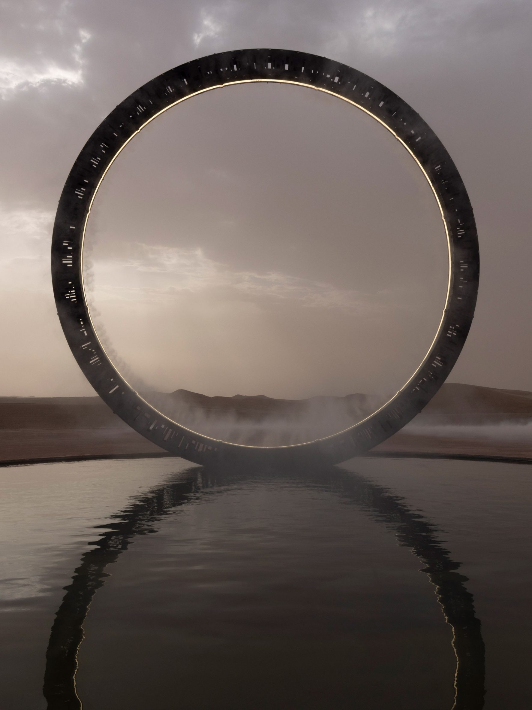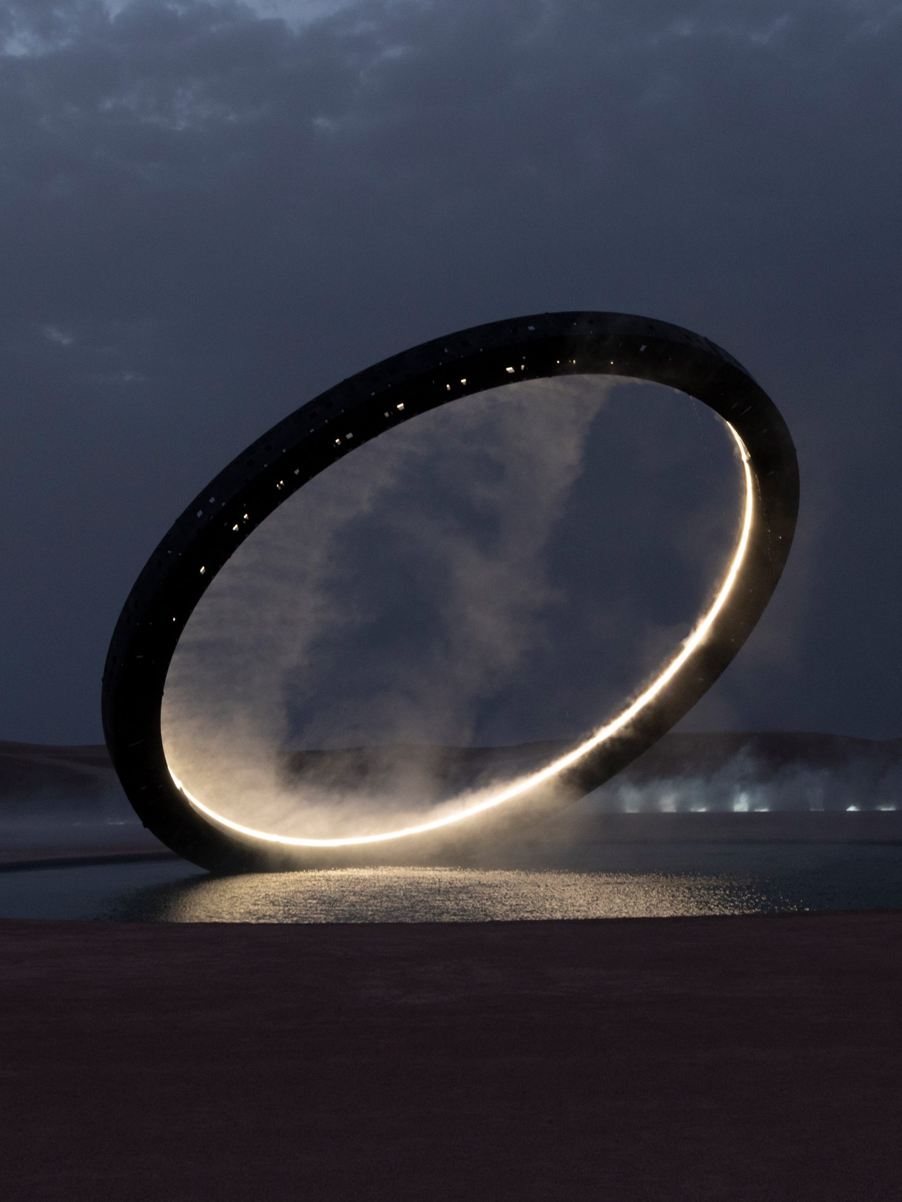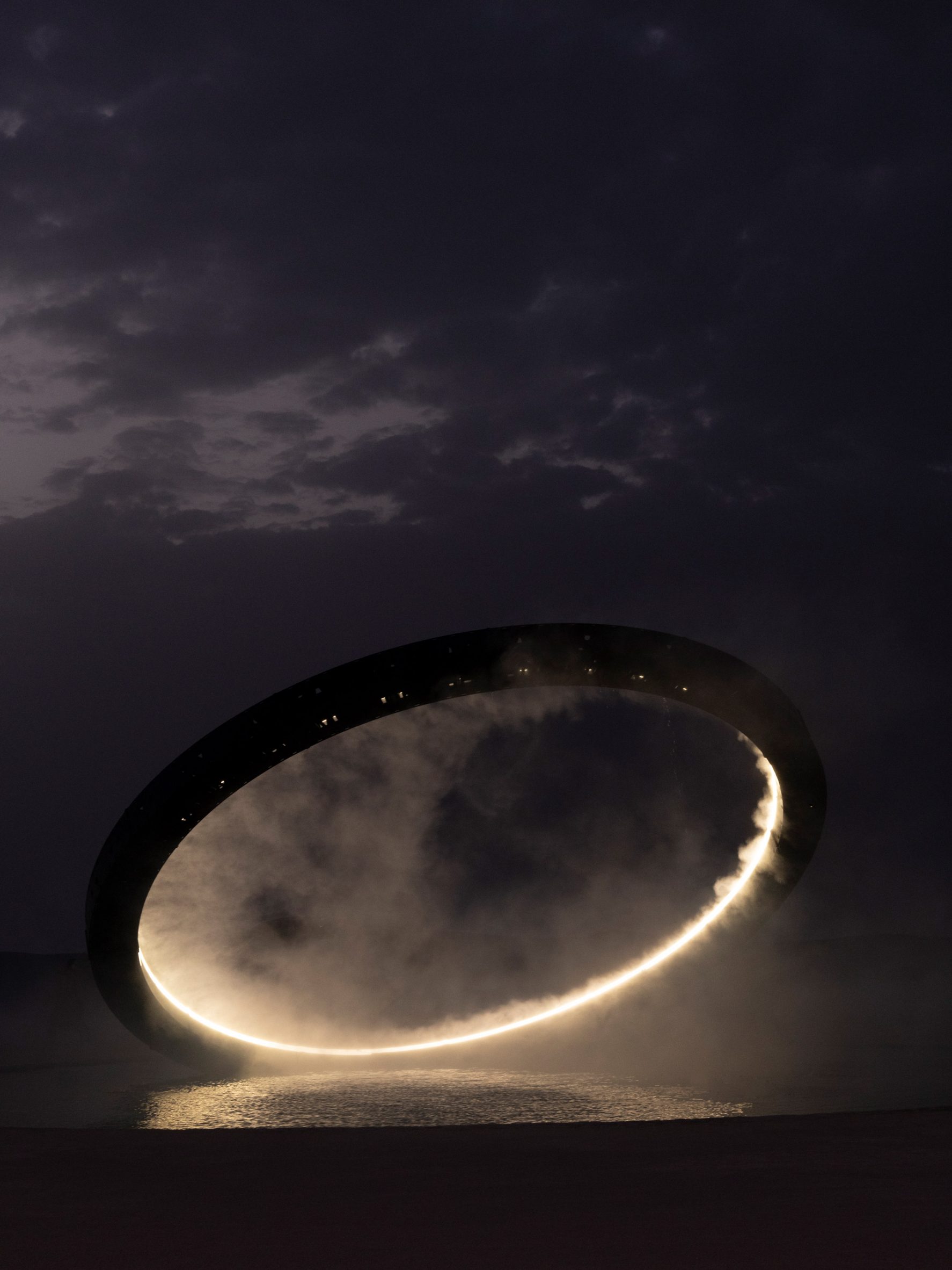 Khi buổi biểu diễn kết thúc, một chiếc vòng kim loại phát sáng khổng lồ vươn lên từ cái ao tròn, xoắn lại và xoay tròn tỏa ra làn sương mù nhân tạo bao phủ không gian sự kiện.