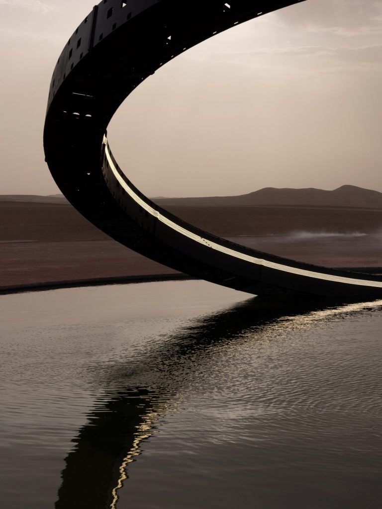 “Một bối cảnh đầy cảm hứng ở giữa sa mạc Agafay: chiếc vòng phát sáng như một ốc đảo giữa không gian rộng lớn, khô cằn”, Saint Laurent chia sẻ về thiết kế của chương trình. “Hy vọng và bí ẩn được đặt cạnh nhau như một phép ẩn dụ cho sự phức tạp hấp dẫn của cuộc sống.”