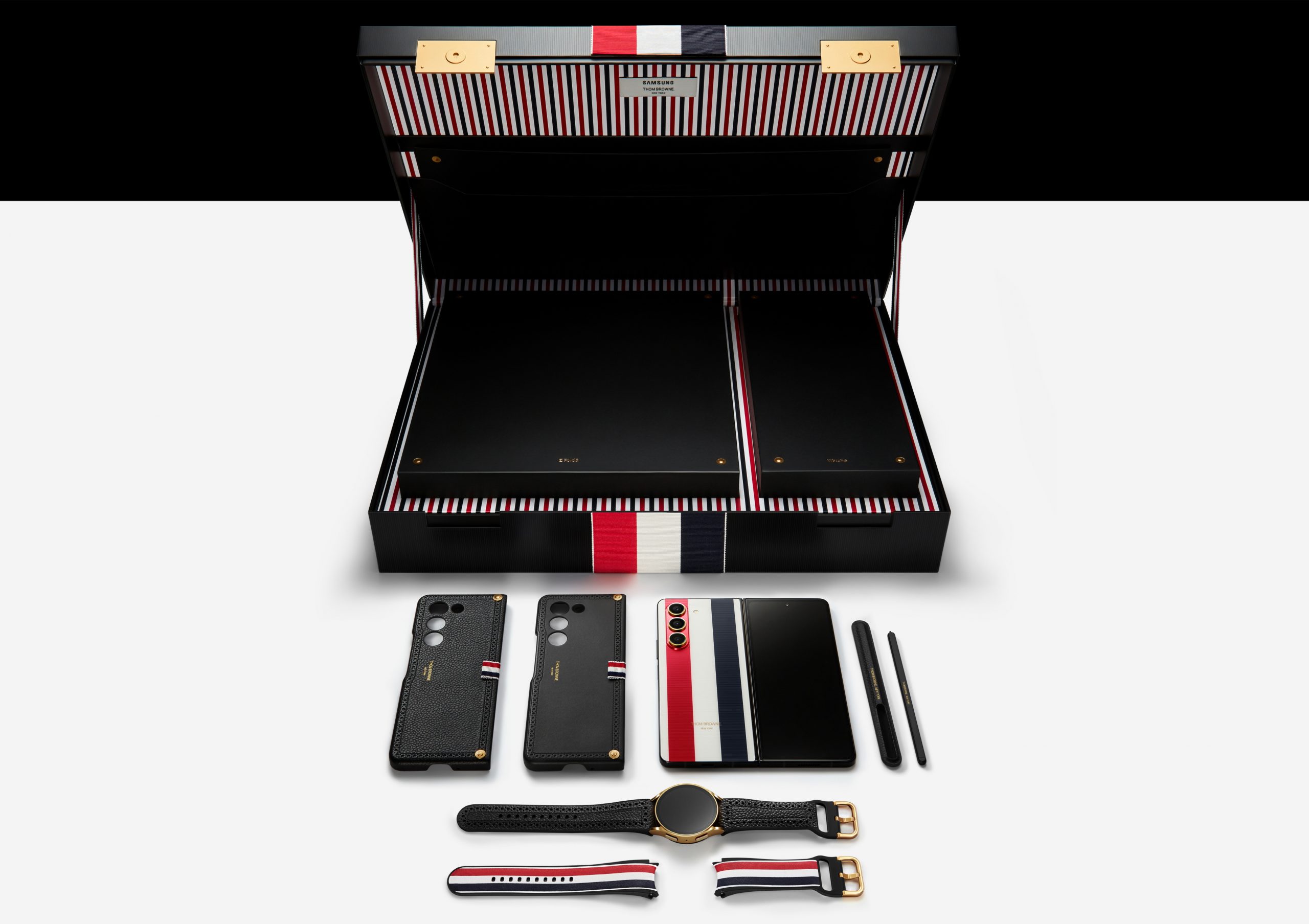Samsung hợp tác với Thom Browne lần đầu tiên vào năm 2020 với chiếc Galaxy Z Flip. Sau đó cứ mỗi năm bộ đôi này sẽ cho ra mắt một vài phiên bản đặc biệt của dòng điện thoại gập và đồng hồ thông minh.