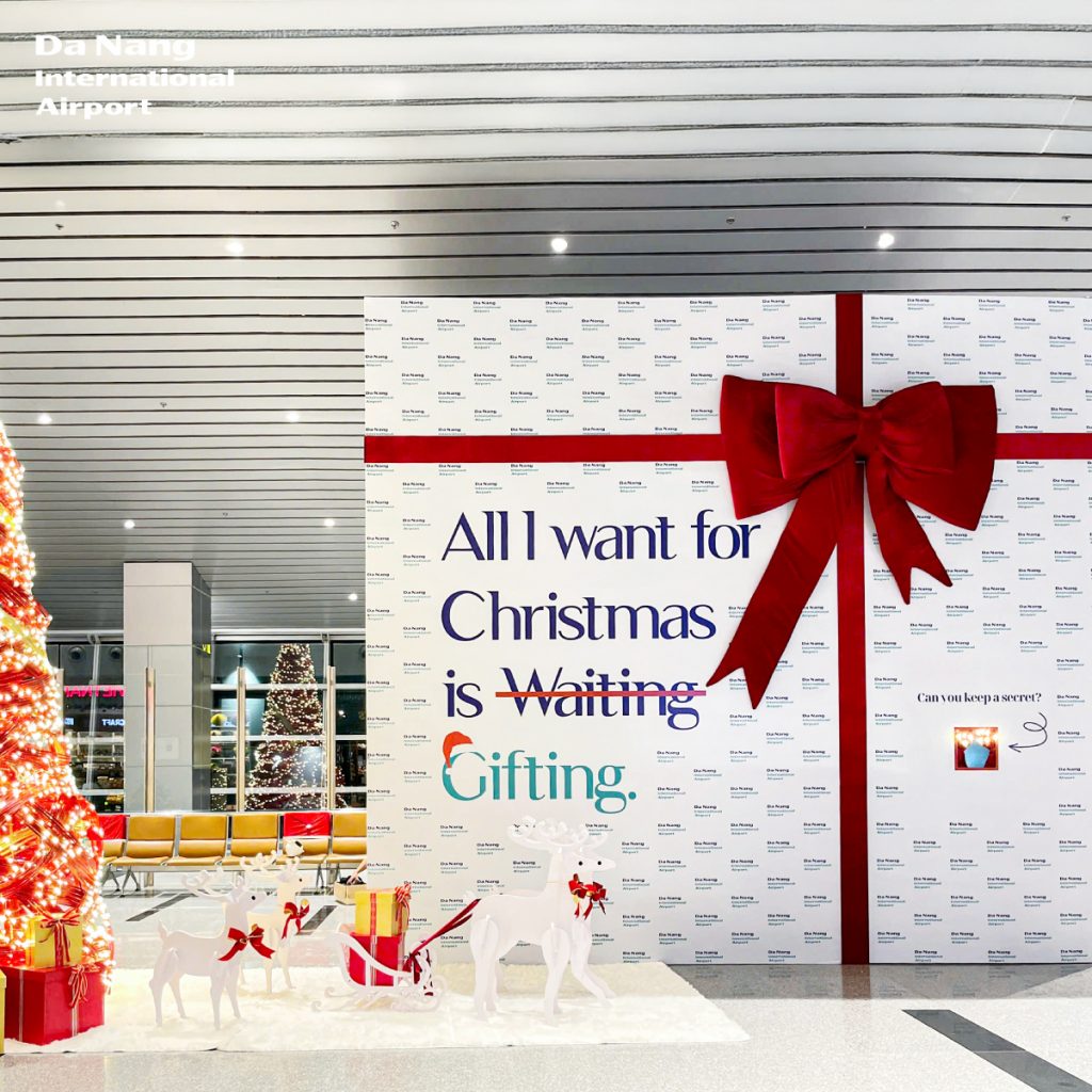 Trước đó, sân bay Quốc tế Đà Nẵng đã “gây xôn xao” cộng đồng mạng xã hội với “Hộp quà bí mật” khổng lồ, được trưng bày ngay trong khuôn viên sân bay. Dòng chữ “All I want for Christmas is Gifting” được ghi trên hộp quà khiến nhiều hành khách hiếu kỳ suy đoán xem thông điệp này liệu có phải là “manh mối” cho bí mật nằm bên trong hay không.