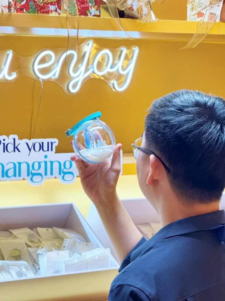 “Tôi chỉ định ghé xem cho vui, nhưng cuối cùng lại nán lại khá lâu để làm xong món quà này. Ý tưởng phụ kiện trang trí mang chủ đề Đà Nẵng rất thú vị, món nào tôi cũng muốn chọn mang về hết. Một kỷ niệm rất dễ thương trước giờ bay.” – Han Koo, du khách đến từ Hàn Quốc chia sẻ.