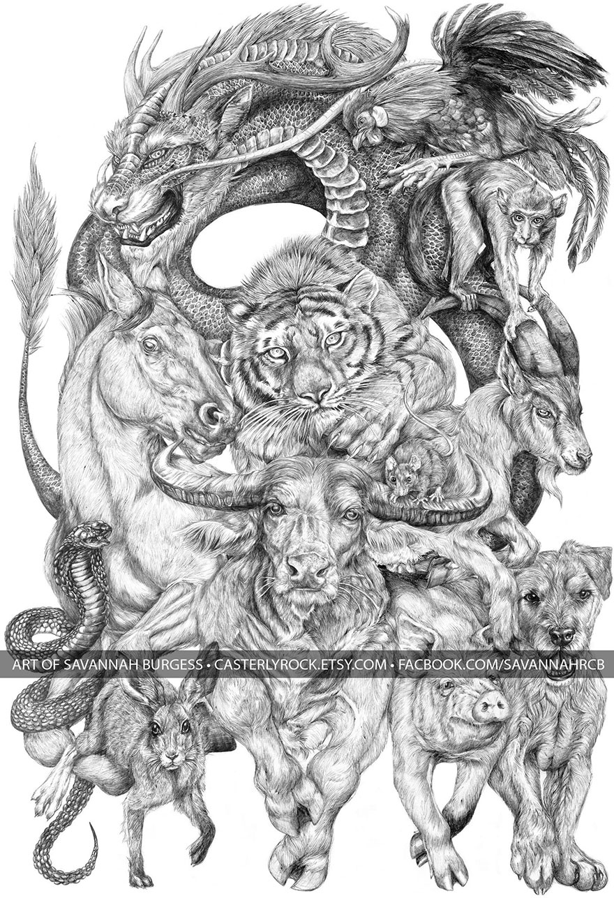 Trong khi chúng ta đang dành thời gian để tận hưởng những ngày hè đầy nắng tại các bãi biển hoặc đi du lịch ở một nơi nào đó thì Savannah Burgess đã dành hết mùa hè của mình để vẽ nên bức tranh về 12 con giáp cực ngầu mà RGB sắp giới thiệu đến các bạn ở bên dưới đây! Là một nghệ sỹ còn khá trẻ tại Atlanta, Savannah Burgess thậm chí chỉ mới 19 tuổi và cô đã mang đến cho mọi người một sự ngạc nhiên không hề nhỏ khi hoàn thành bức tranh này.