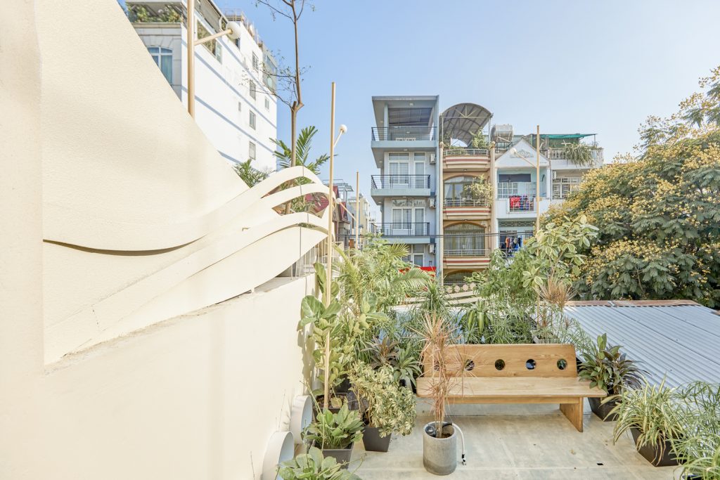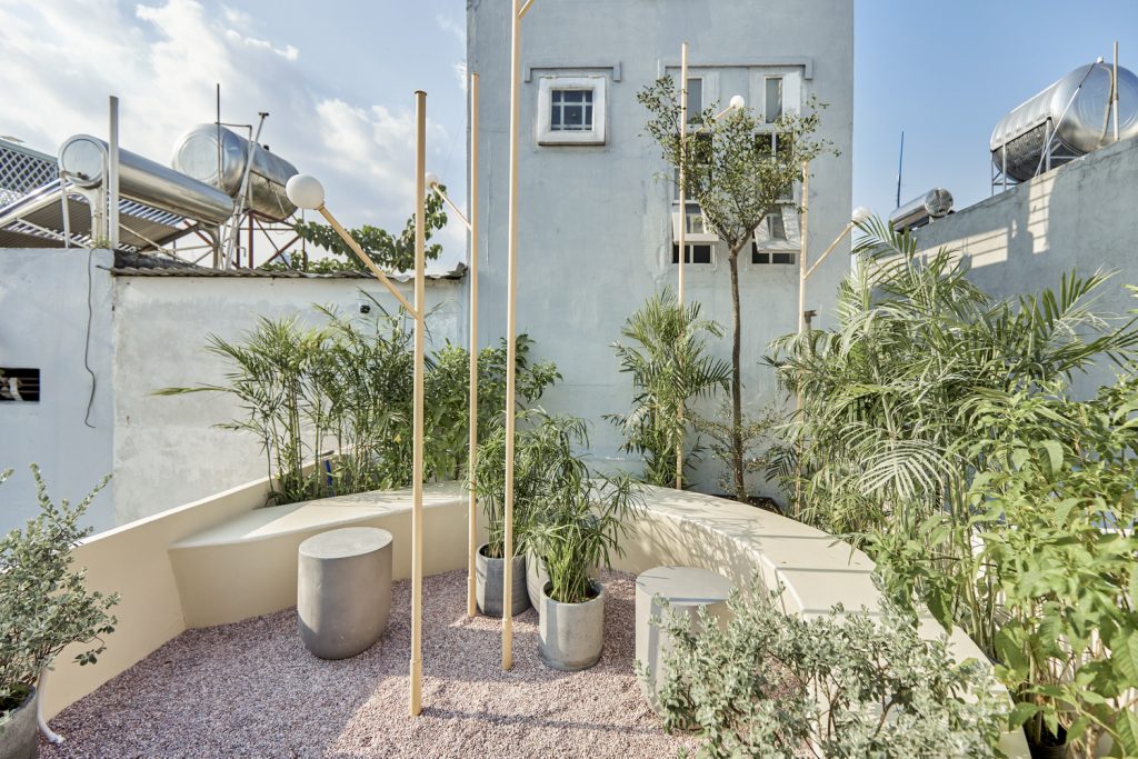 Nếu sân thượng là khu vườn trên không thì phần đèn như cành cây nâng đỡ tổ ấm, đồng thời đây cũng là điểm nhấn không gian cho những tín đồ mê check in và là khu hút thuốc.