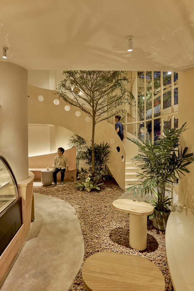 Toàn bộ nội thất và không gian đều lấy cảm hứng từ tổ chim, đường cong, cành cây, chim trên cành hay chỉ đơn giản là một chấm tròn nhỏ, tất cả tạo nên một tổ chim giữa lòng thành phố.