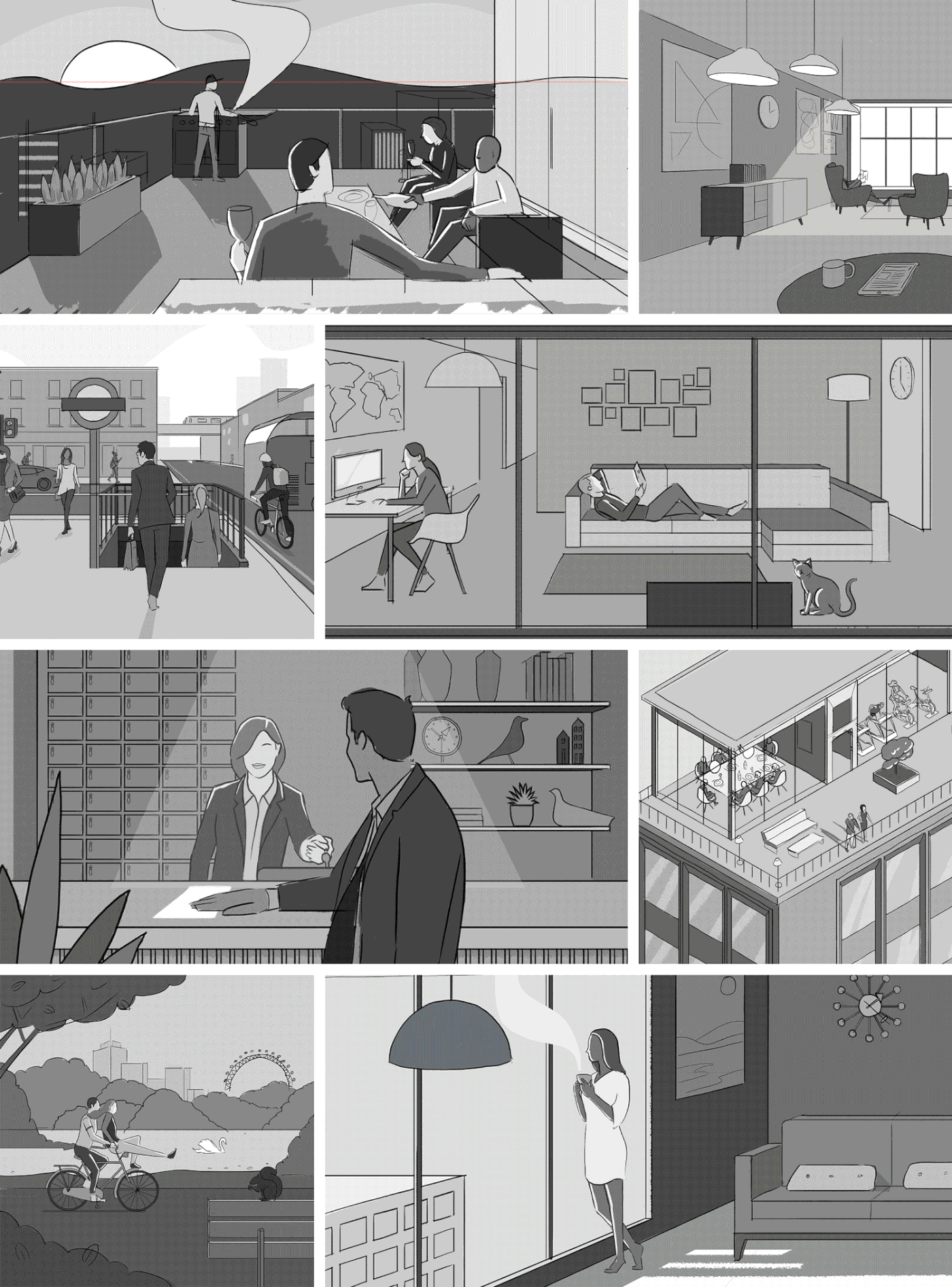 “Essential Living” là một chuổi tranh minh họa do họa sỹ Jack Dally thực hiện cho Agency Steve Edge. Jack cho biết anh cảm dự án thực sự là thử thách khi mỗi bức tranh đều phải thể hiện được tính “thương hiệu” mà khách hàng yêu cầu.