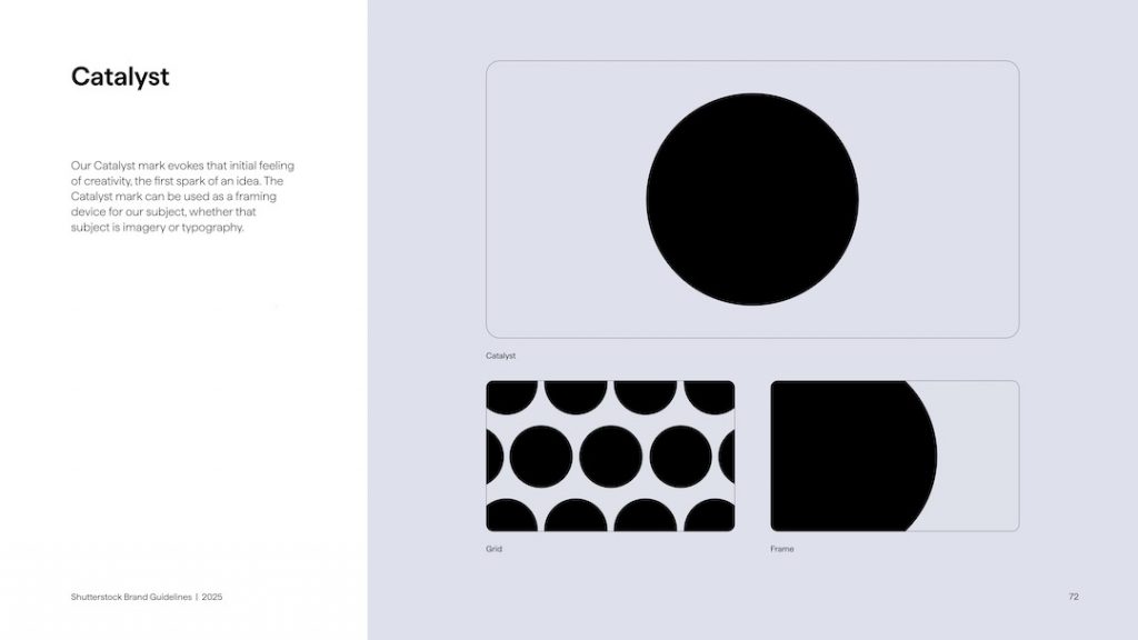 Trọng tâm của lần tái định vị này là logo mới của Shutterstock với hiết kế wordmark sạch sẽ được điểm xuyết bằng một họa tiết đồ họa trên chữ “O”. Họa tiết này được chia thành hai yếu tố: “catalyst” (chất xúc tác) và “impact” (tác động).