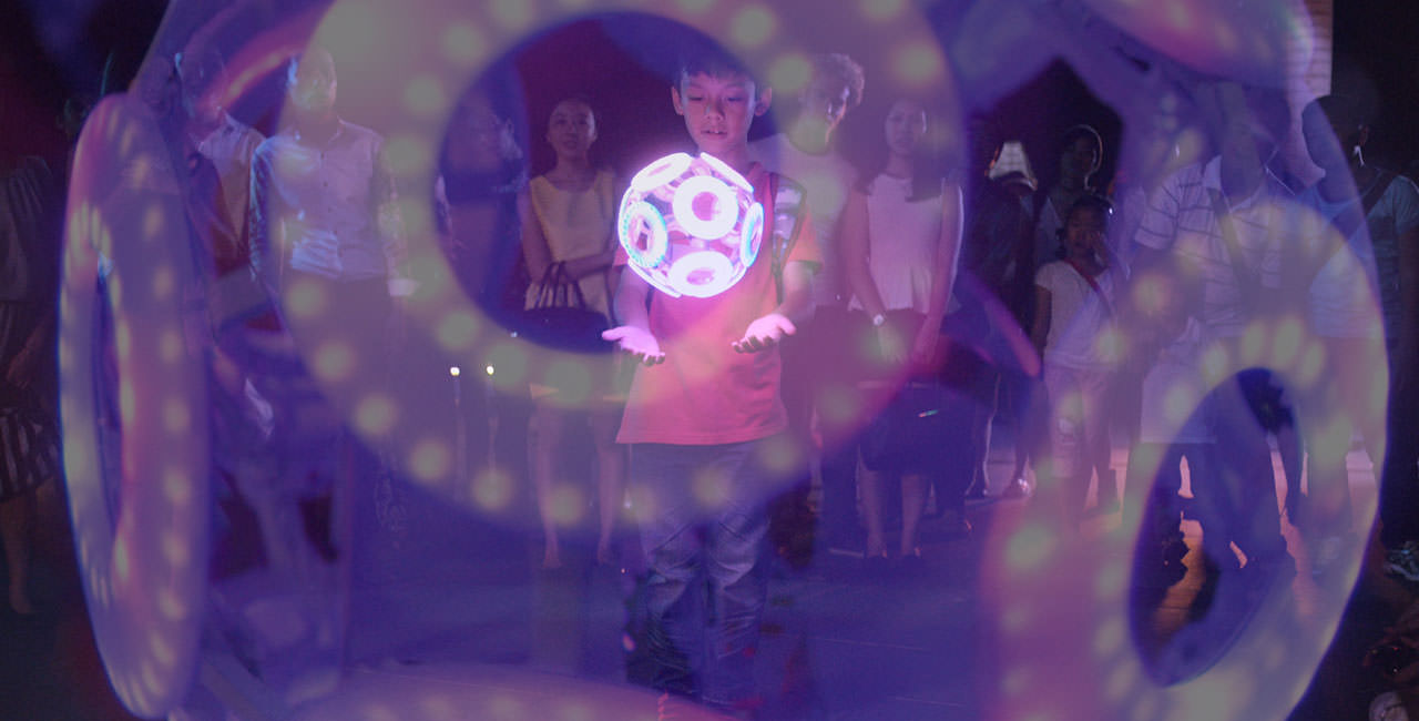 Và đặc biệt nhất, tất cả người xem đều nhìn thấy một sản phẩm trông giống một chiếc máy bay không người lái có gắn đèn LED nhiều màu.