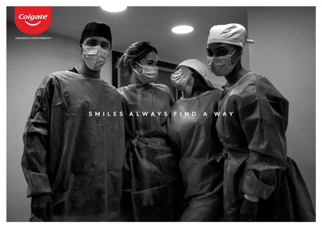 Chiến dịch ‘Smiles Always Find A Way’ của Colgate với 6 print ad trên nền trắng đen nhưng đầy cảm xúc. Nó thể hiện rõ sự lạc quan, tình yêu thương mà chúng ta dành cho nhau, dù phải sống trong một thời điểm khó khăn. Thưc hiện bởi agency quảng cáo VMLY&R Pháp, campaign này của Colgate đã chạm vào cảm xúc của người xem, tạo cảm hứng cho tinh thần sống tích cực.