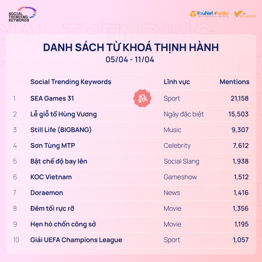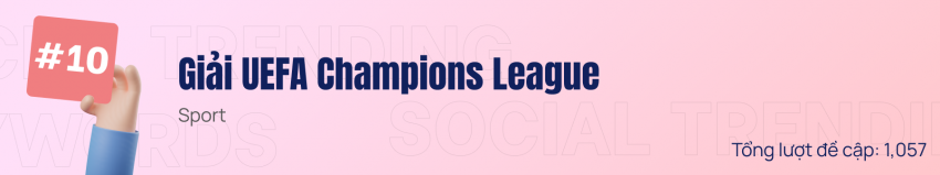 Giải UEFA Champions League hay còn được biết đến với cái tên cúp C1 châu Âu là một trong những giải đấu bóng đá danh giá nhất trên thế giới. Mùa giải 2021/2022 hiện đang đi tới những vòng tranh tài cuối cùng đầy kịch tính, thu hút sự theo dõi đông đảo của người hâm mộ toàn cầu. Ngoài ra, thông tin Quang Hai có thể sẽ góp mặt ở giải đấu tên tuổi này vào mùa giải tới cũng đang khiến rất nhiều cổ động viên nước nhà đặc biệt quan tâm.#SocialTrendingKeywords: 10 từ khóa được “gọi tên” nhiều nhất mạng xã hội tuần qua (29/3 – 4/4)