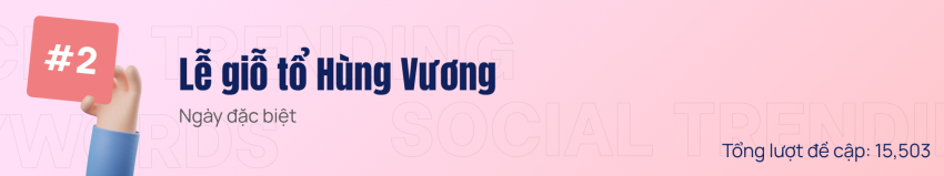 Bên cạnh đó, sau một thời gian dài bị ảnh hưởng bởi dịch bệnh, nhân dịp nghỉ lễ này ngành du lịch đã chính thức mở cửa lại, nhiều hoạt động vui chơi, ăn uống đều có những chương trình khuyến mãi để kích cầu. Mọi người cũng tích cực tìm kiếm địa điểm nghỉ dưỡng cho gia đình. Do đó tổng lượt đề cập tới từ khoá về ngày lễ giỗ tổ đã đạt đến con số rất ấn tượng.
