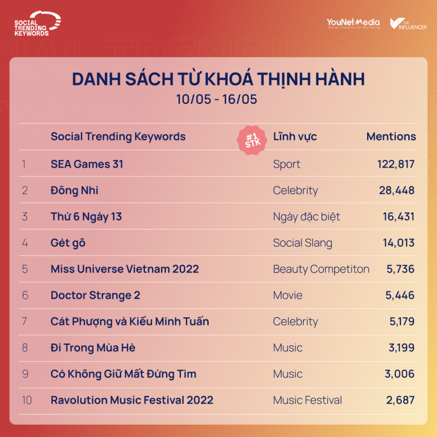 Danh sách từ khóa tuần qua cho thấy sự quan tâm đặc biệt với sự kiện thể thao lớn, theo sau đó là hàng loạt những “drama” kịch tính trong làng giải trí Việt.