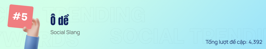 Vẫn trụ vững trong danh sách từ khóa trong tháng 3 chính là social slang Ô dề. Với sound gốc từ người dùng TikTok linda_hoang, loạt content thú vị đã được giới trẻ truyền tay nhau và nhập cuộc tham gia. Dù chỉ mới qua được 3 tháng trong năm nay, nhiều bạn trẻ cũng công nhận 2022 là một năm lên ngôi của loạt social slang, khiến cho “từ điển Gen Z” trở nên đa dạng và phong phú hơn bao giờ hết.