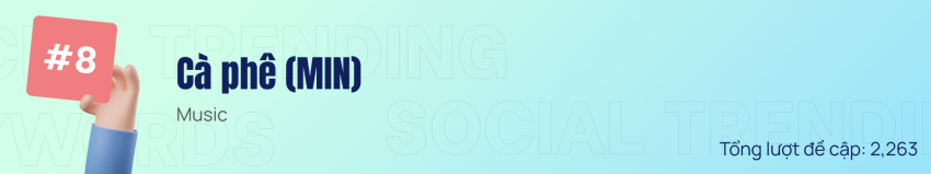 Nữ ca sĩ MIN đã quay trở lại với album 50/50 và sự ra mắt của MV Cà phê vào tối ngày 21/3. Album bao gồm 8 bài hát, đánh dấu sự nghiệp 8 năm trong nghề của MIN, được đầu tư trau chuốt từ hình ảnh, âm thanh đến vũ đạo. Bài hát nhanh chóng đạt được những con số triệu view ấn tượng, vị trí thứ 8 trong danh sách Top Trending YouTube. Tuy nhiên, ca khúc lại dấy lên một số nghi ngờ từ khán giả khi mang giai điệu có phần giống với hit Say So (Doja Cat). Chính vì thế, Cà phê hiện đang được bàn luận sôi nổi trên các trang MXH, góp mặt vào danh sách từ khóa thịnh hành với vị trí thứ 8.