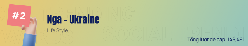 Vẫn xếp ở vị trí thứ 2 nhưng mức độ quan tâm của từ khóa “Nga – Ukraine” đã tăng gấp 3 lần so với tuần trước. Kể từ khi nổ ra, chiến sự giữa hai nước ngày càng leo thang căng thẳng. Chúng ta cũng chứng kiện sự vào cuộc của nhiều quốc gia khác. Trong tuần vừa qua, công chúng dành nhiều sự quan tâm đặc biệt cho những cập nhật về diễn biến các vòng đàm phán căng thẳng của hai nước Nga – Ukraine, cùng những đòn trừng phạt và phản đòn gay gắt diễn ra giữa Nga với phương Tây.