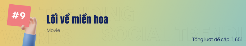 Lối về miền hoa là bộ phim thứ hai của truyền hình Việt Nam lọt vào danh sách từ khóa tuần này, chứng minh cho sức hút không hề kém cạnh của những tác phẩm phim ảnh trong nước. Với bối cảnh làng quê, phim mang đến bức tranh dung dị về nông thôn với khung cảnh mộc mạc, bình yên, tình làng nghĩa xóm ấm áp. Cùng với đó là câu chuyện lập nghiệp của các bạn trẻ với đủ những cung bậc cảm xúc đắng cay ngọt bùi, khiến cho những khán trẻ xem phim cảm thấy được sẻ chia, đồng cảm, có thêm nhiều bài học. Còn những khán giả lớn tuổi lại thấy đồng cảm, được gợi nhớ về một thời thanh xuân tươi đẹp đã qua.